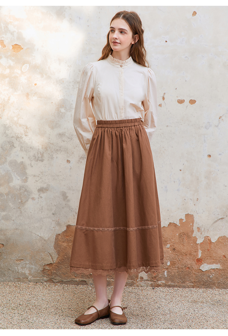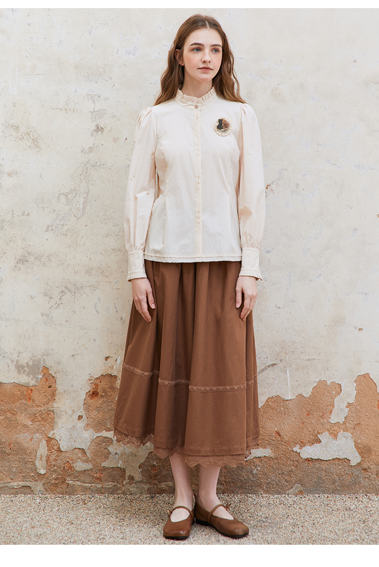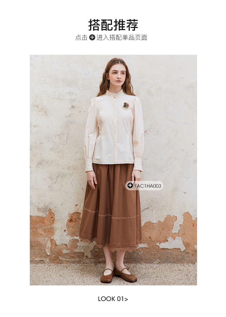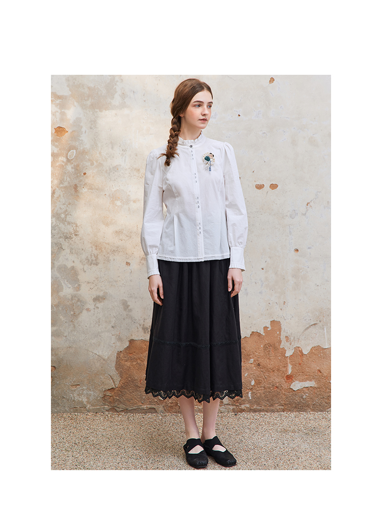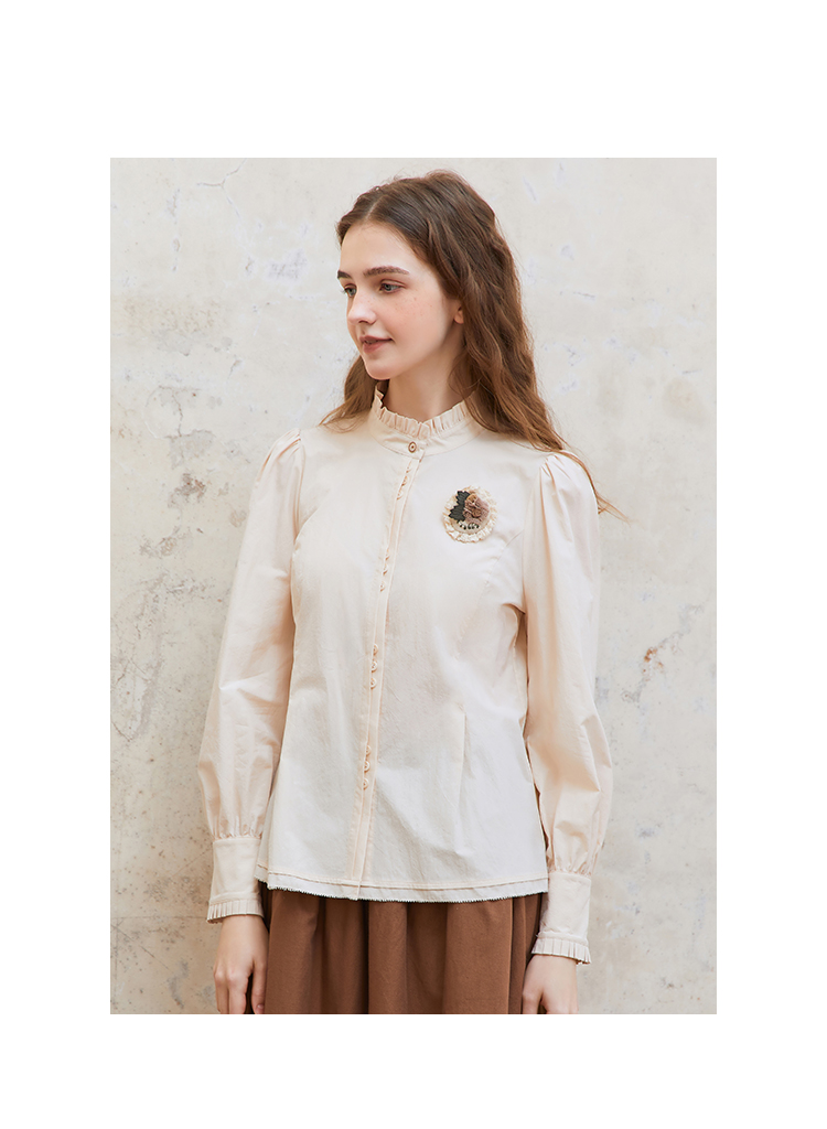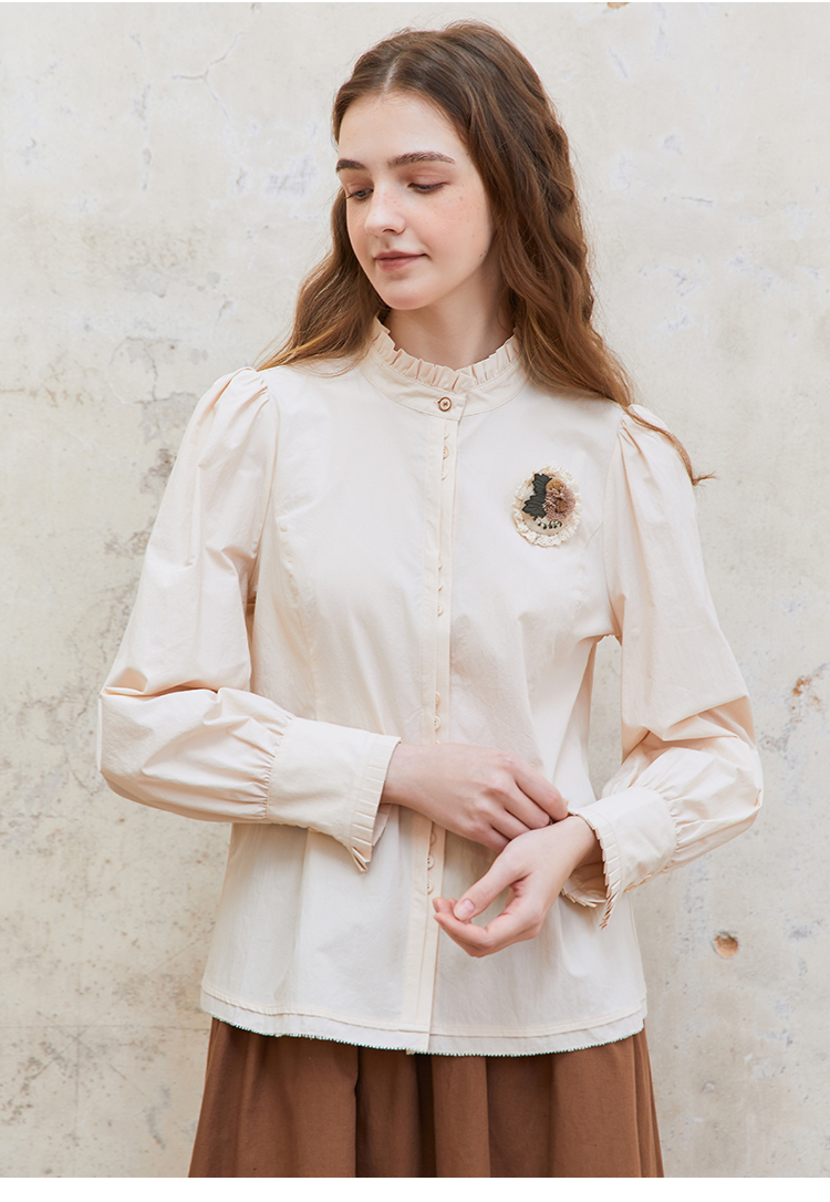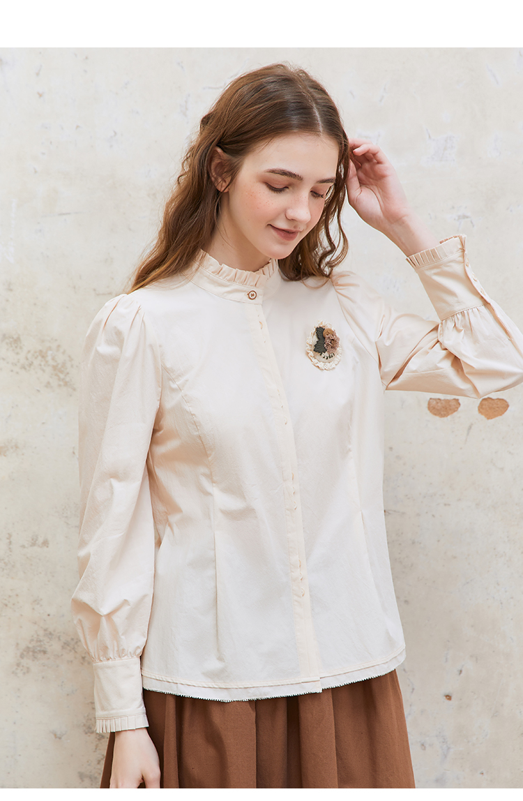 Famecoco纯棉木耳边立领长袖衬衫女士气质小众衬衣FAC1BH008