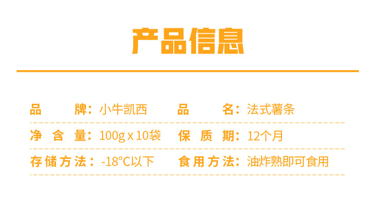 小牛凯西 薯条冷冻薯条100g*10袋