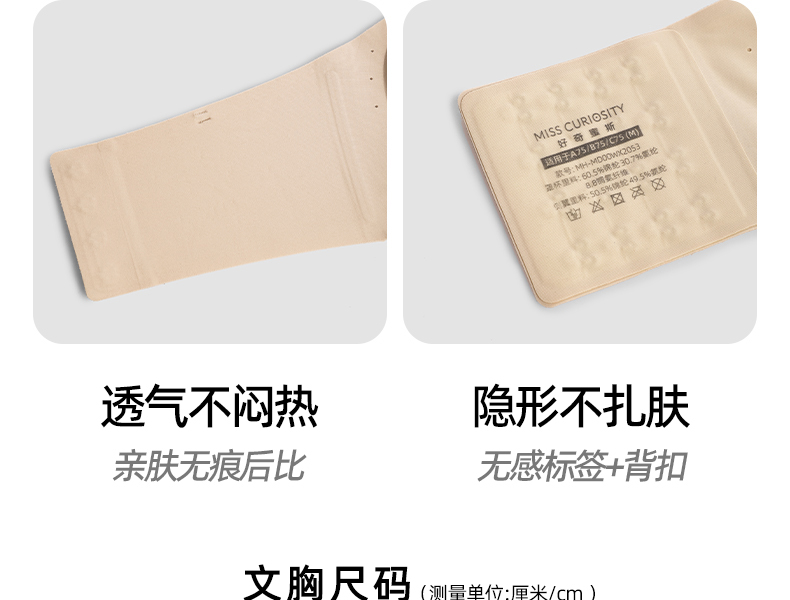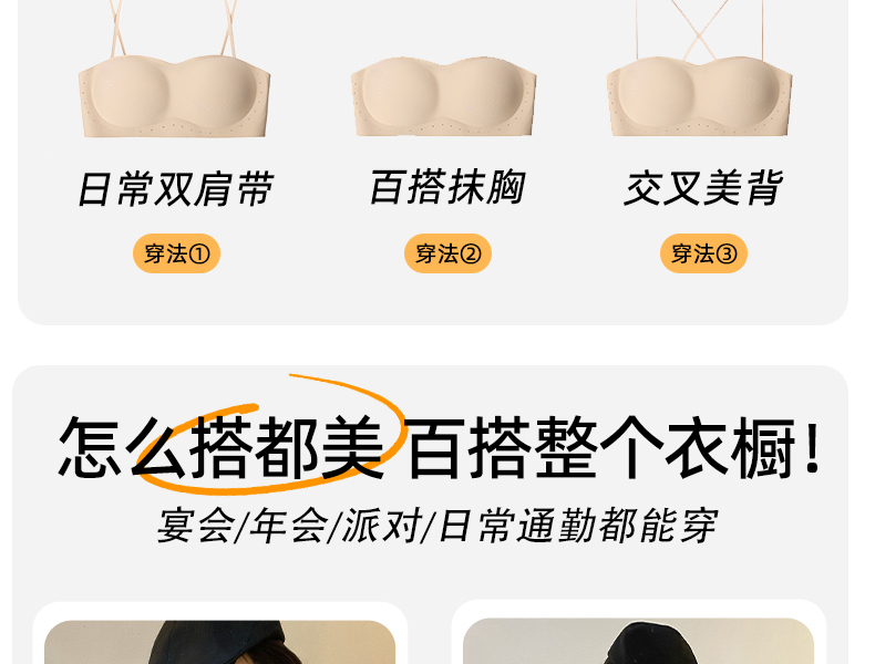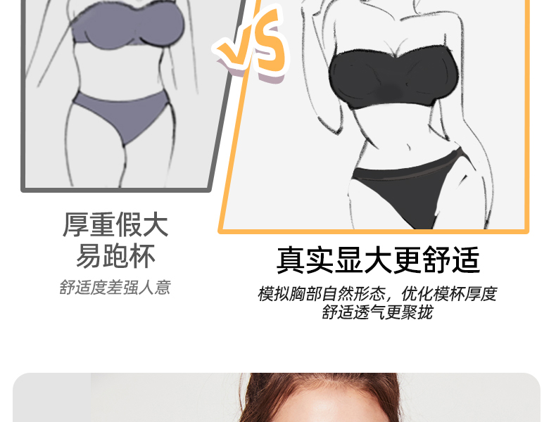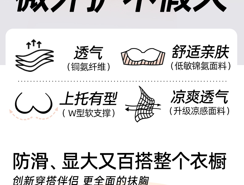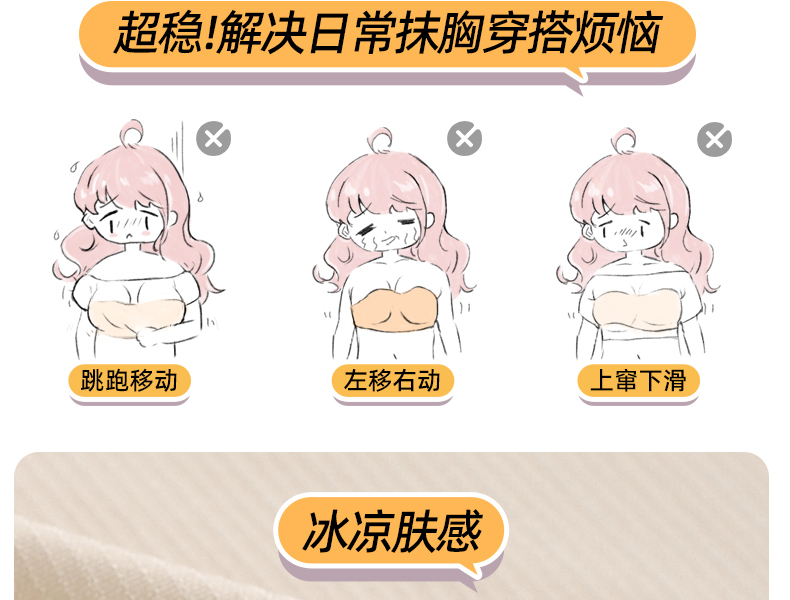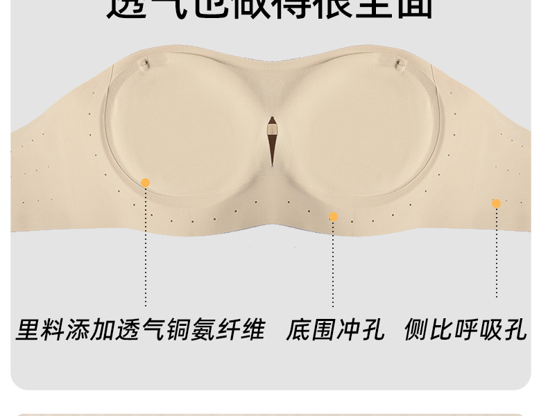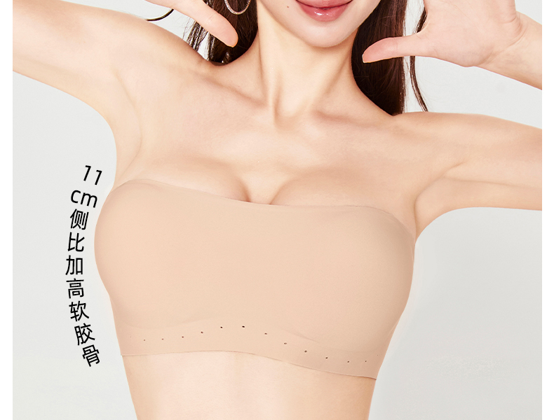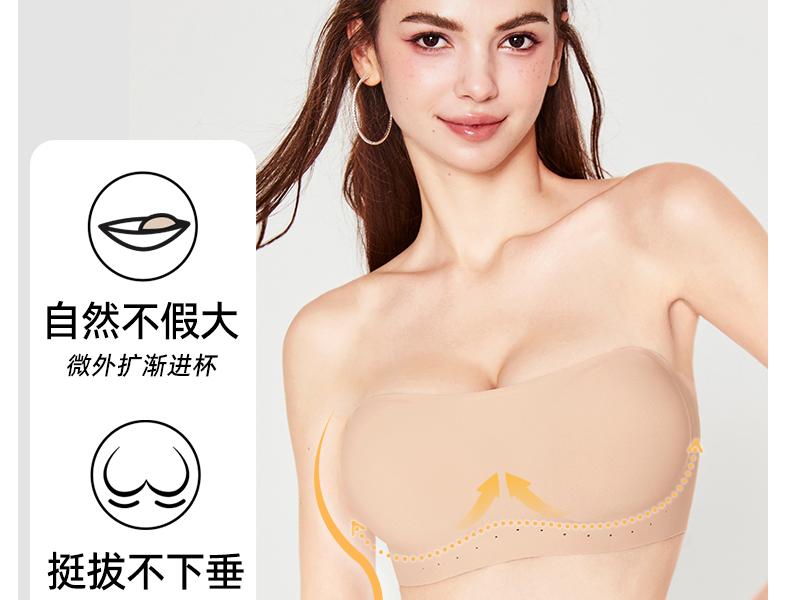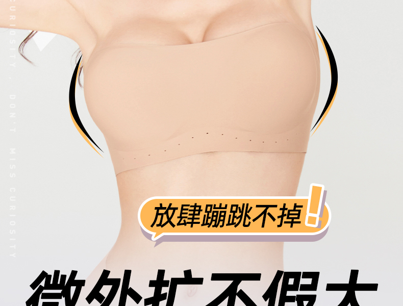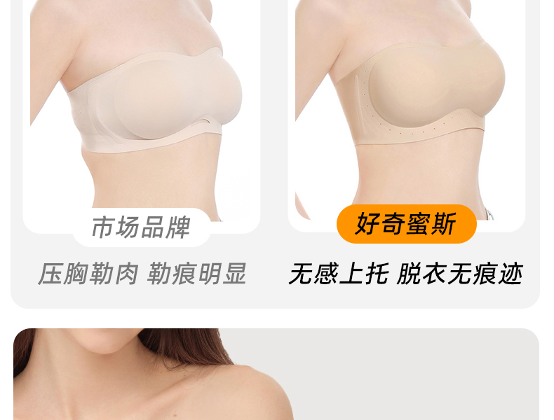 好奇蜜斯防滑无肩带内衣女小胸聚拢外扩显大抹胸罩粉底液文胸夏薄 布琪
