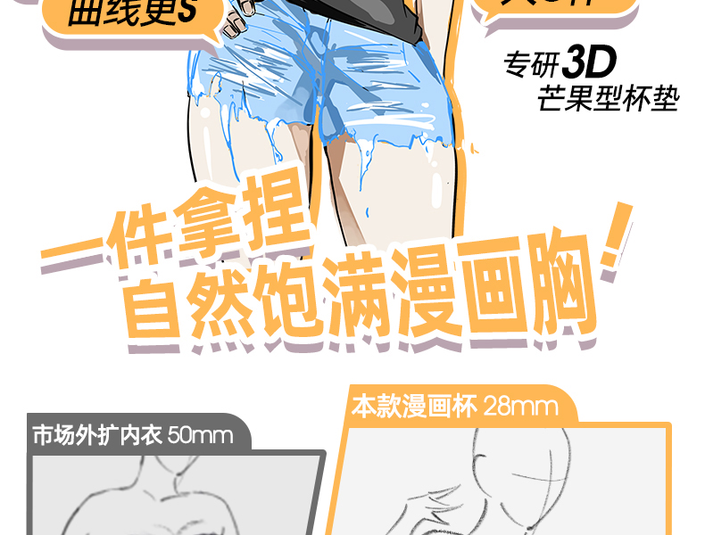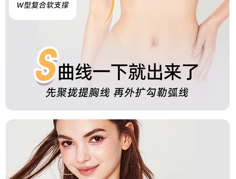 好奇蜜斯光面无痕上托无钢圈外扩内衣女小胸显大文胸罩套装漫画胸 蒂恩文胸