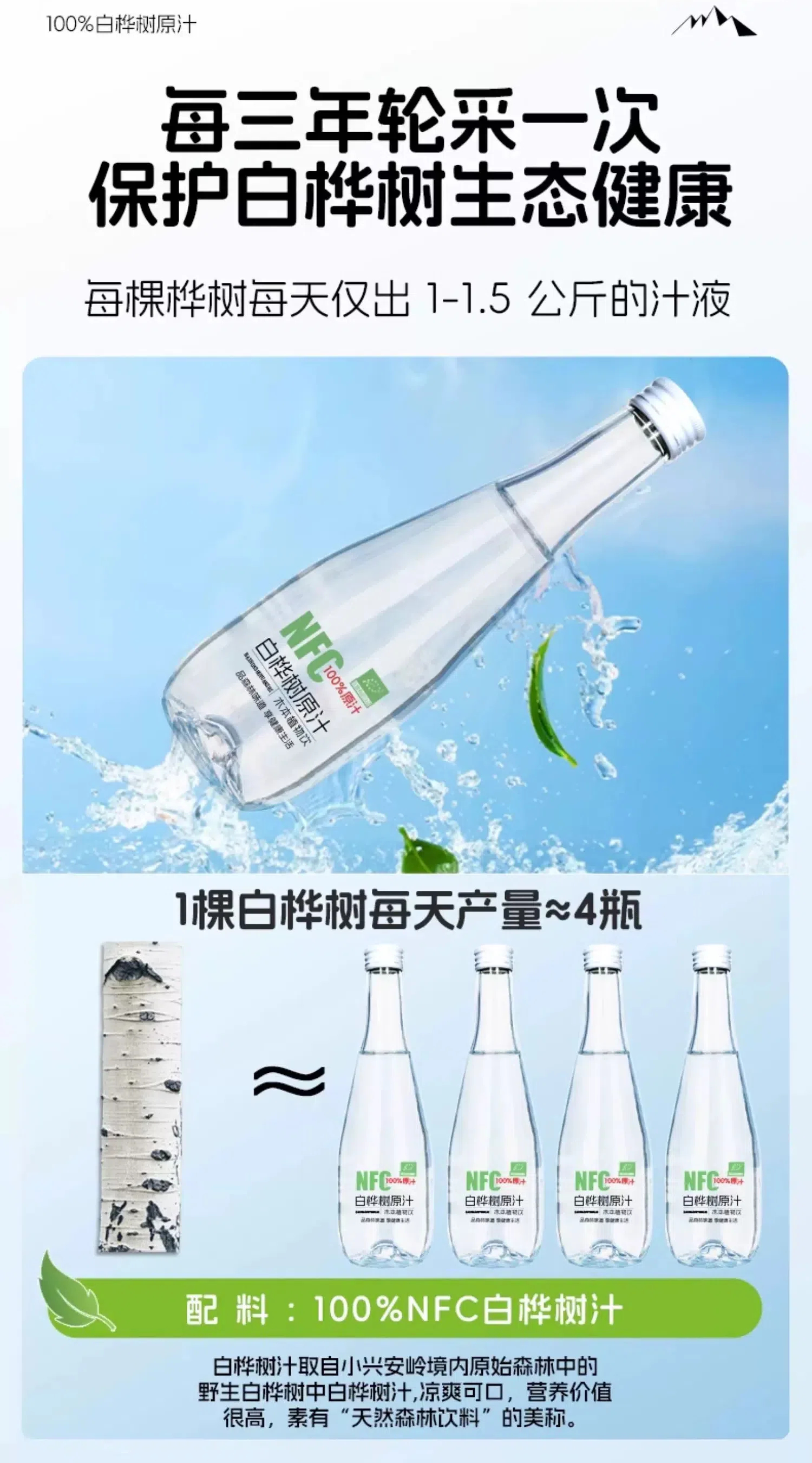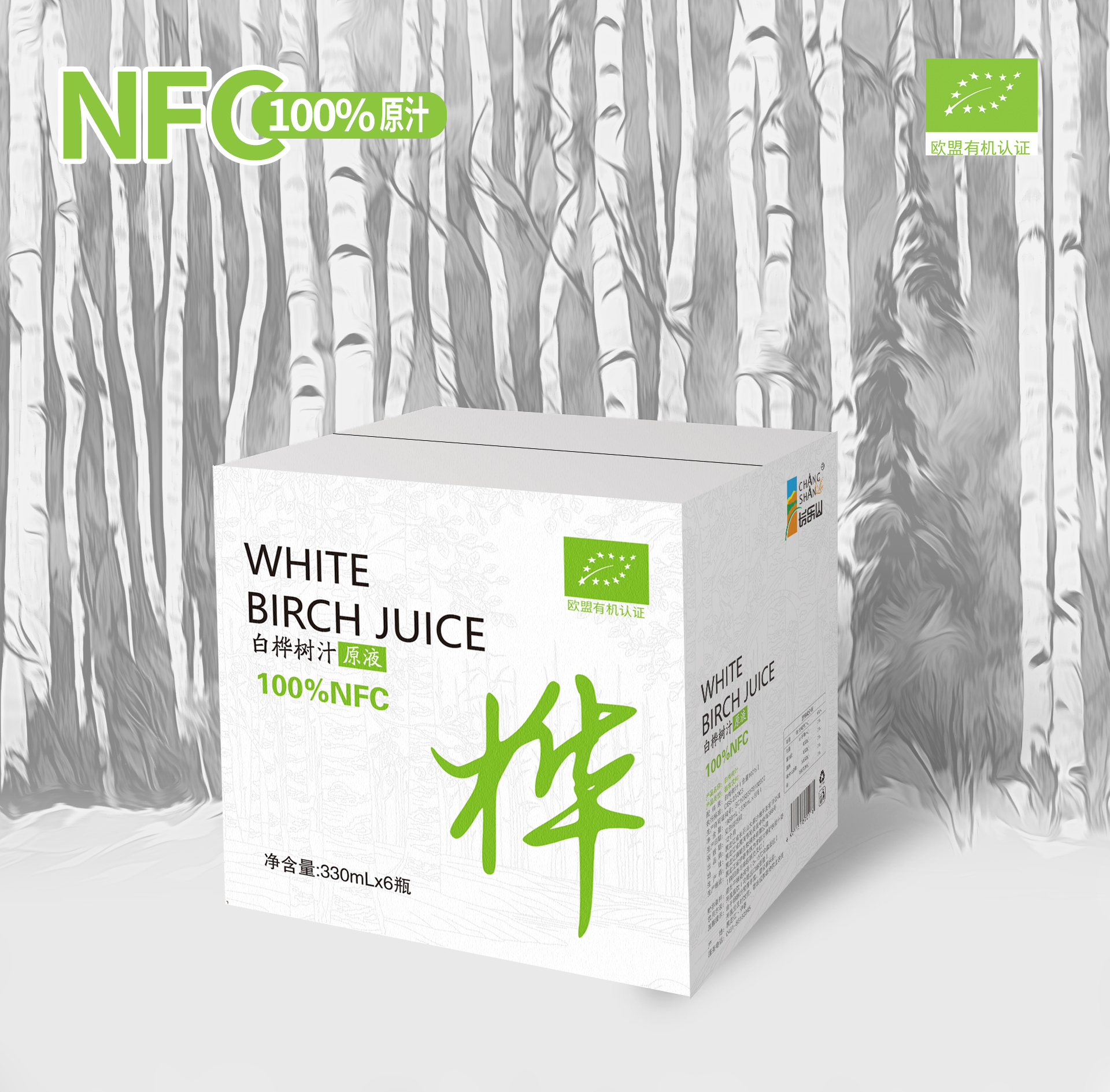 欧盟有机认证【NFC100%白桦树汁原汁】正宗小兴安岭配料只有桦树汁 330mL 6瓶 1箱