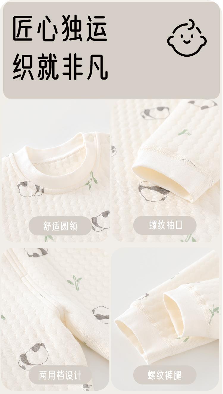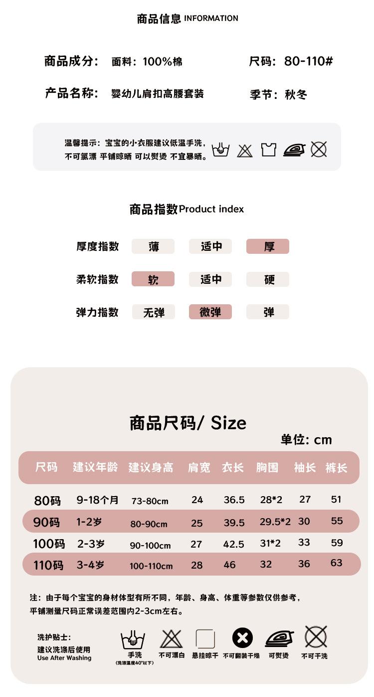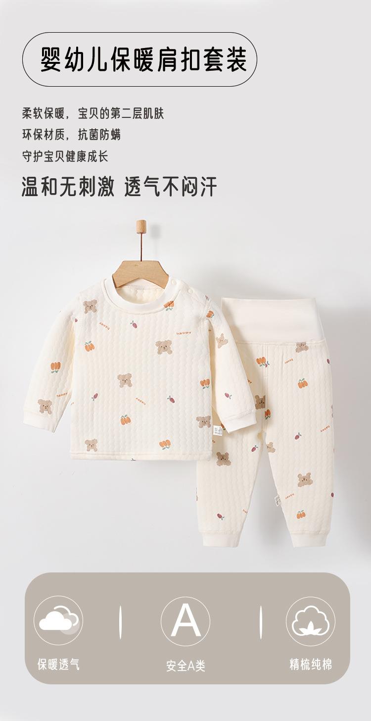 婴幼儿秋冬款纯棉无骨夹棉保暖加厚男女宝宝肩扣高腰护肚分体套装