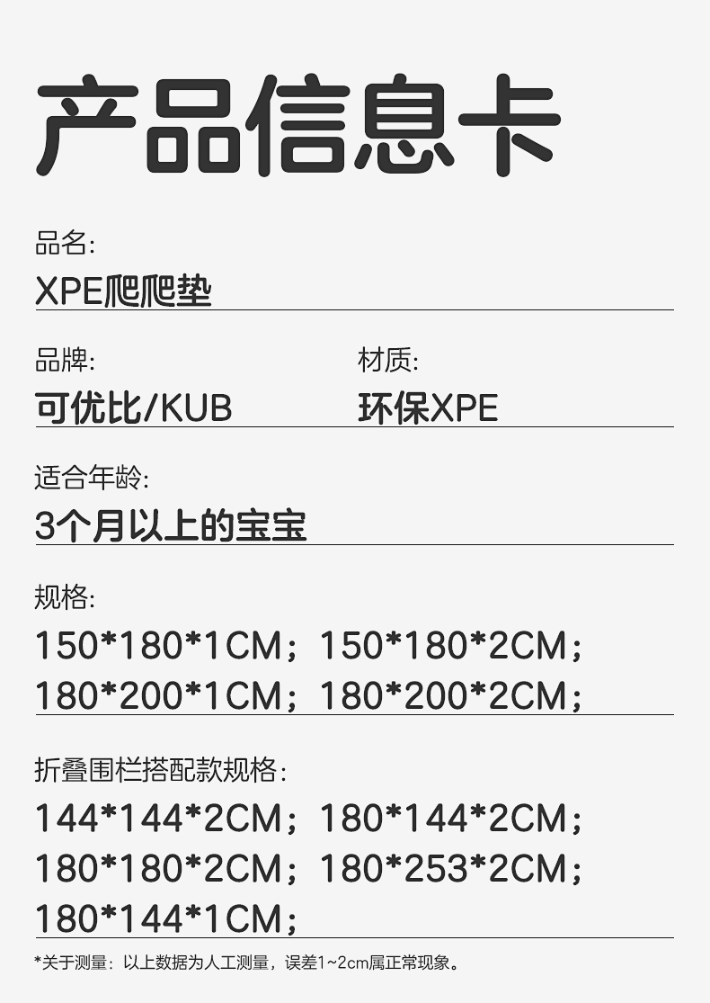 KUB可优比儿童爬爬垫加厚婴儿xpe围栏地毯垫客厅家用爬行宝宝1岁