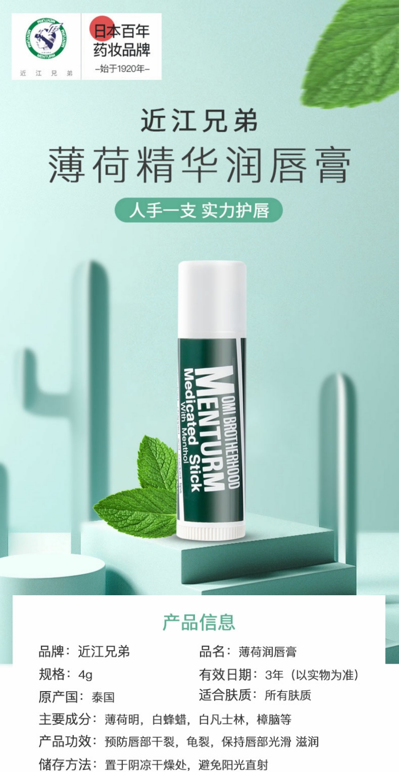 【YZ】日本近江兄弟薄荷润唇膏女男保湿滋润补水无色护唇4g/支