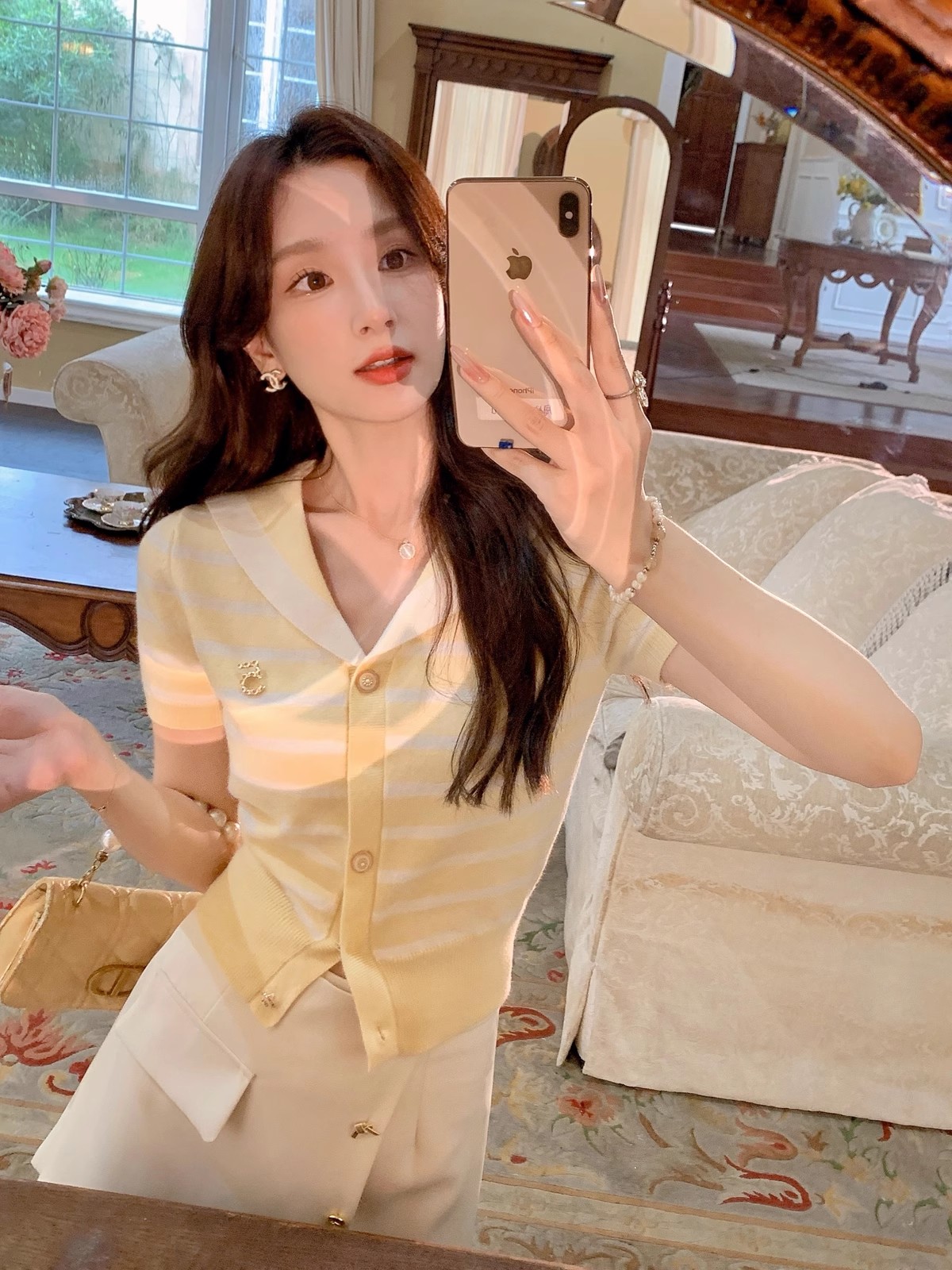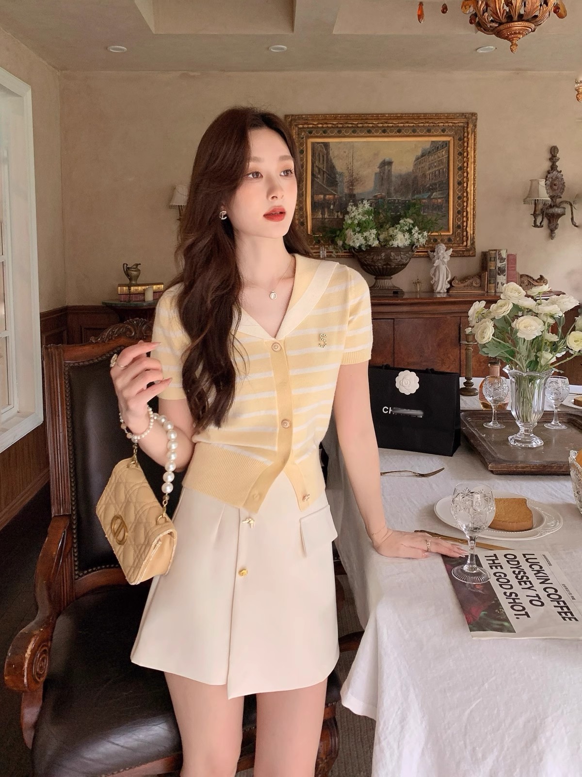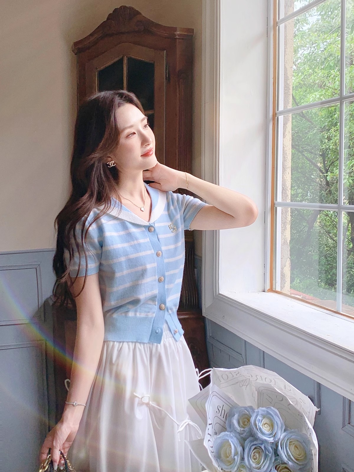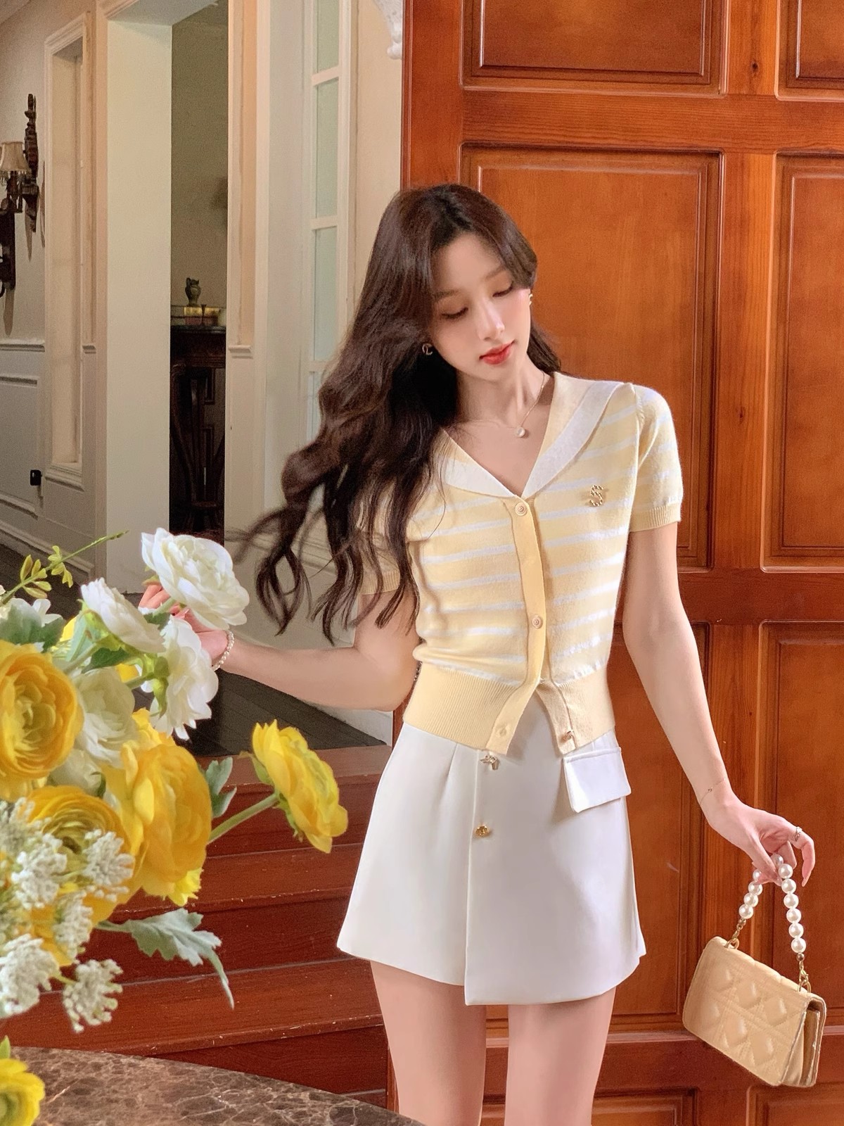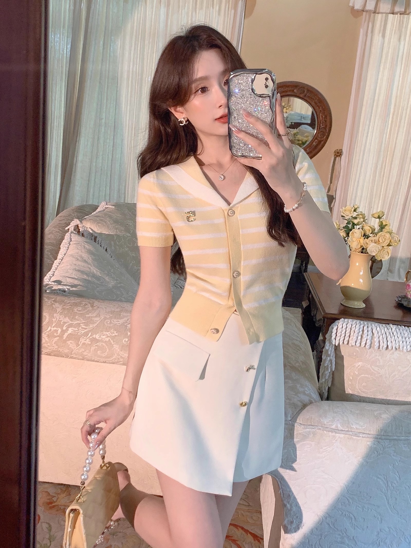 张心子【香芒甜茶】海军领减龄条纹针织上衣女夏季新款法式polo衫 U2406016