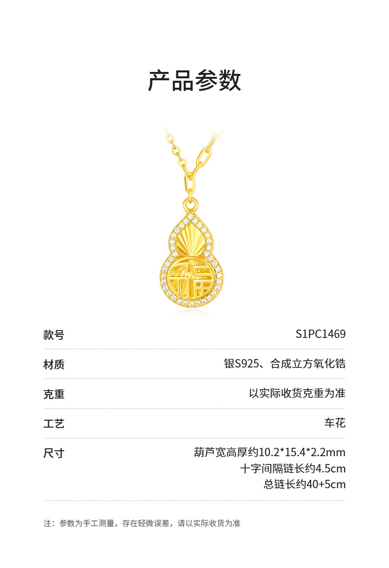 周大生福禄葫芦项链S925纯银女款轻奢高级国风坠链锁骨链生日礼物