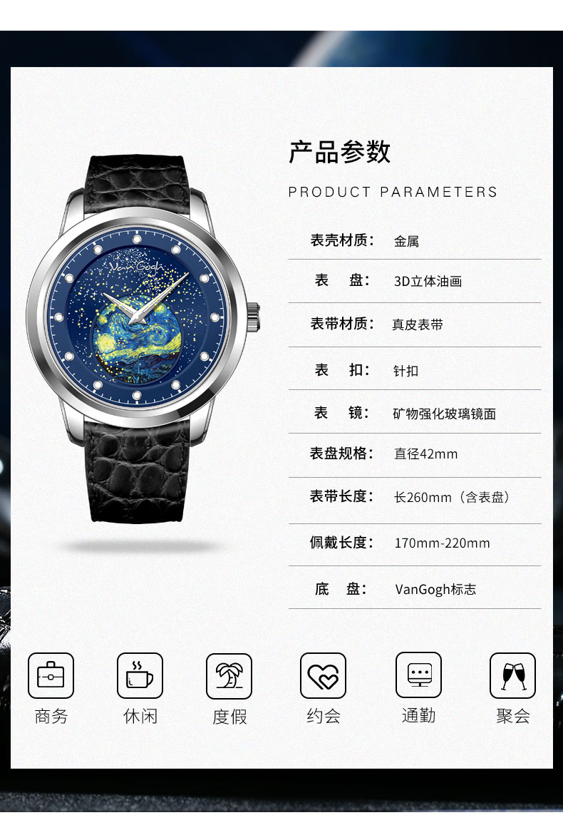 VAN GOGH 梵高 男士手表 闪烁星空小众轻奢时尚简约腕表