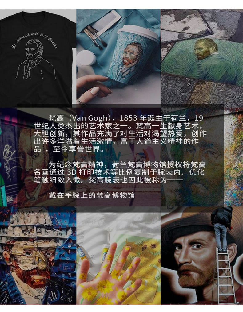 Van Gogh(梵高)瑞士手表油画系列《马的石膏像》原装进口荷兰品牌复古潮牌石英表情侣款