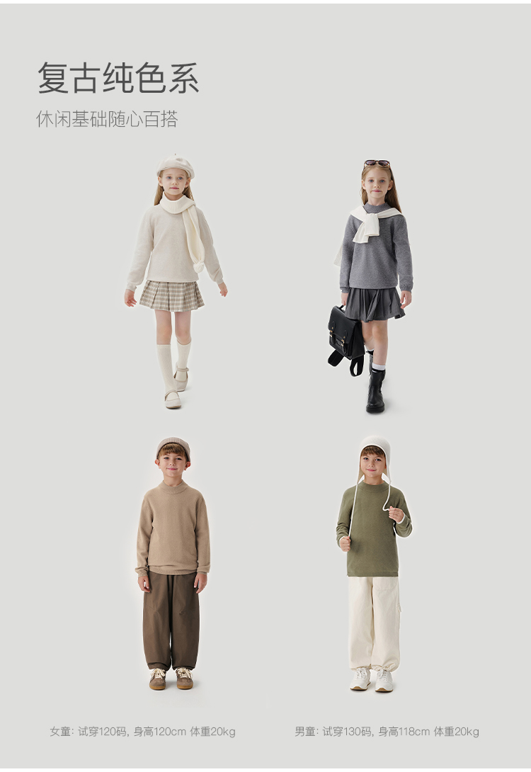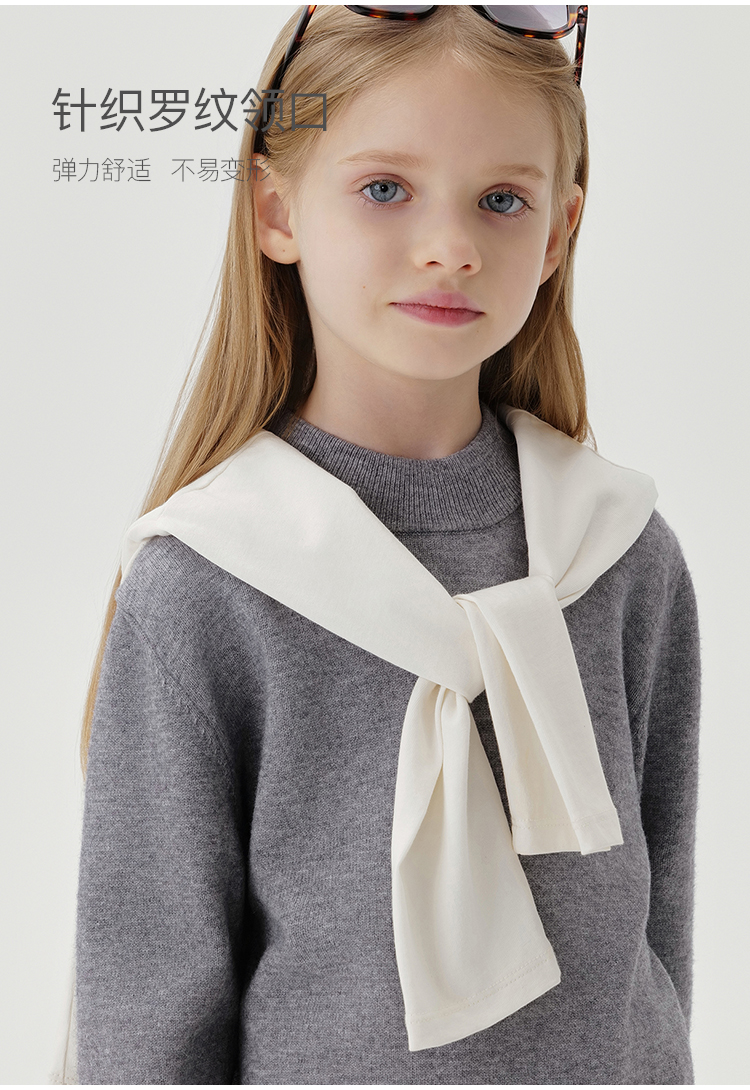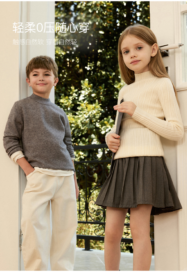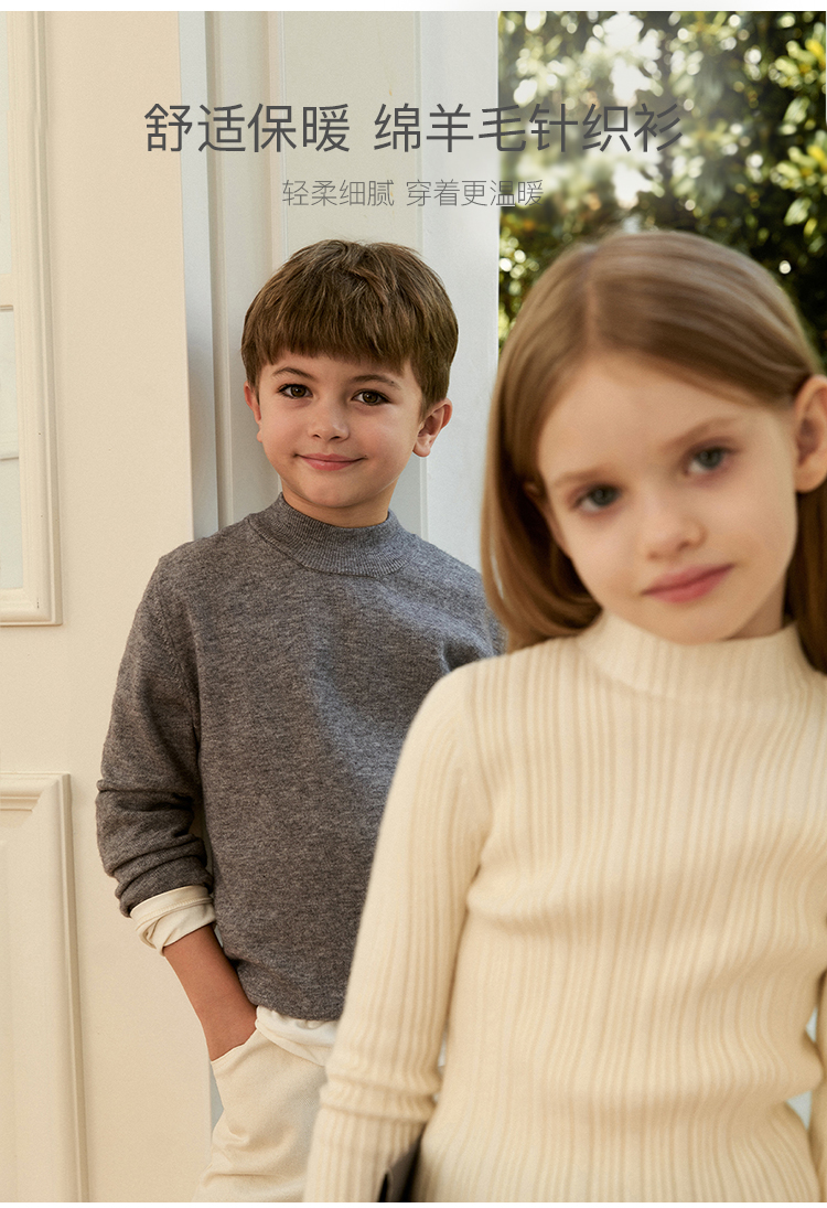 【绵羊毛】马克珍妮男女童复古纯色毛衣儿童针织衫秋冬新款241679