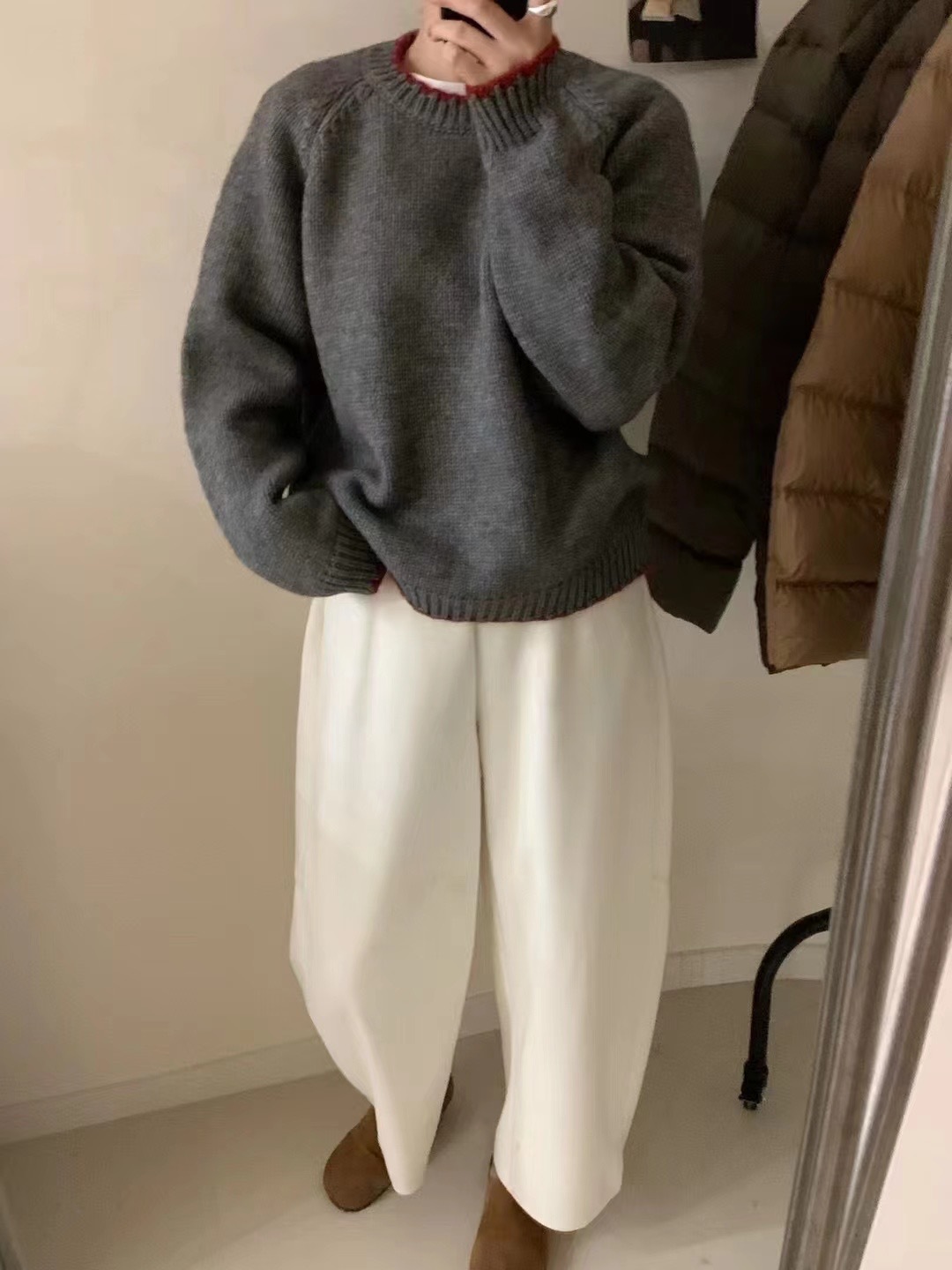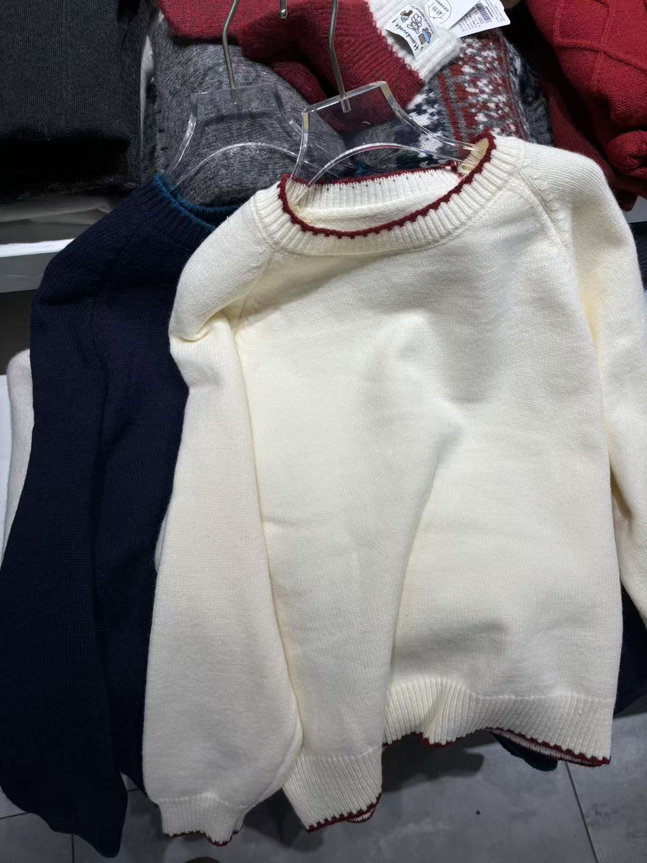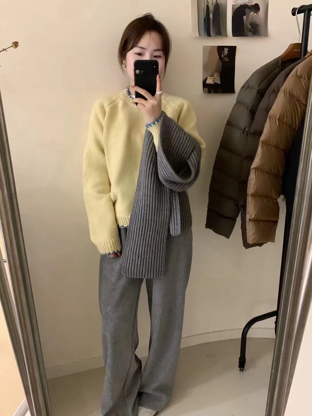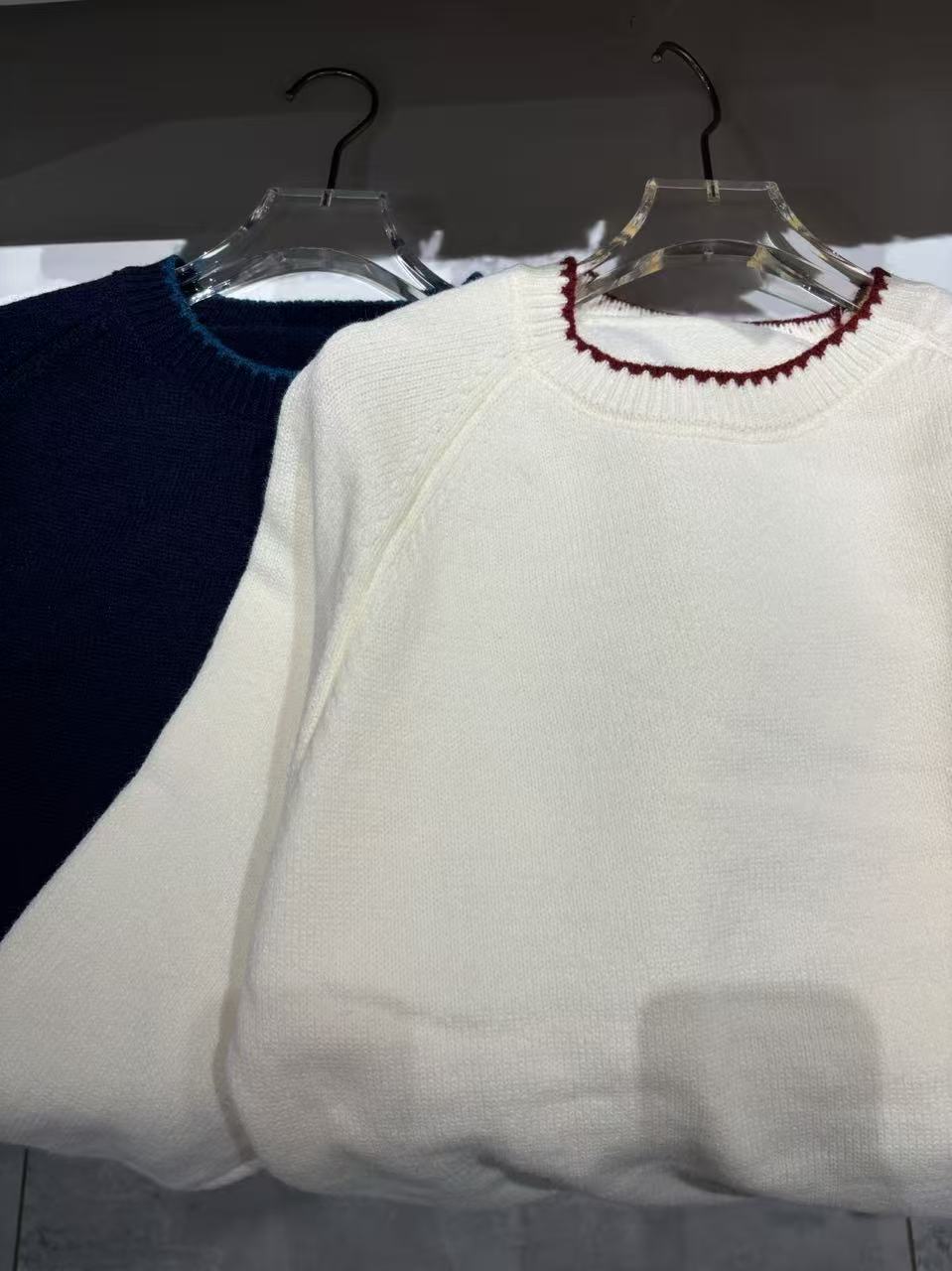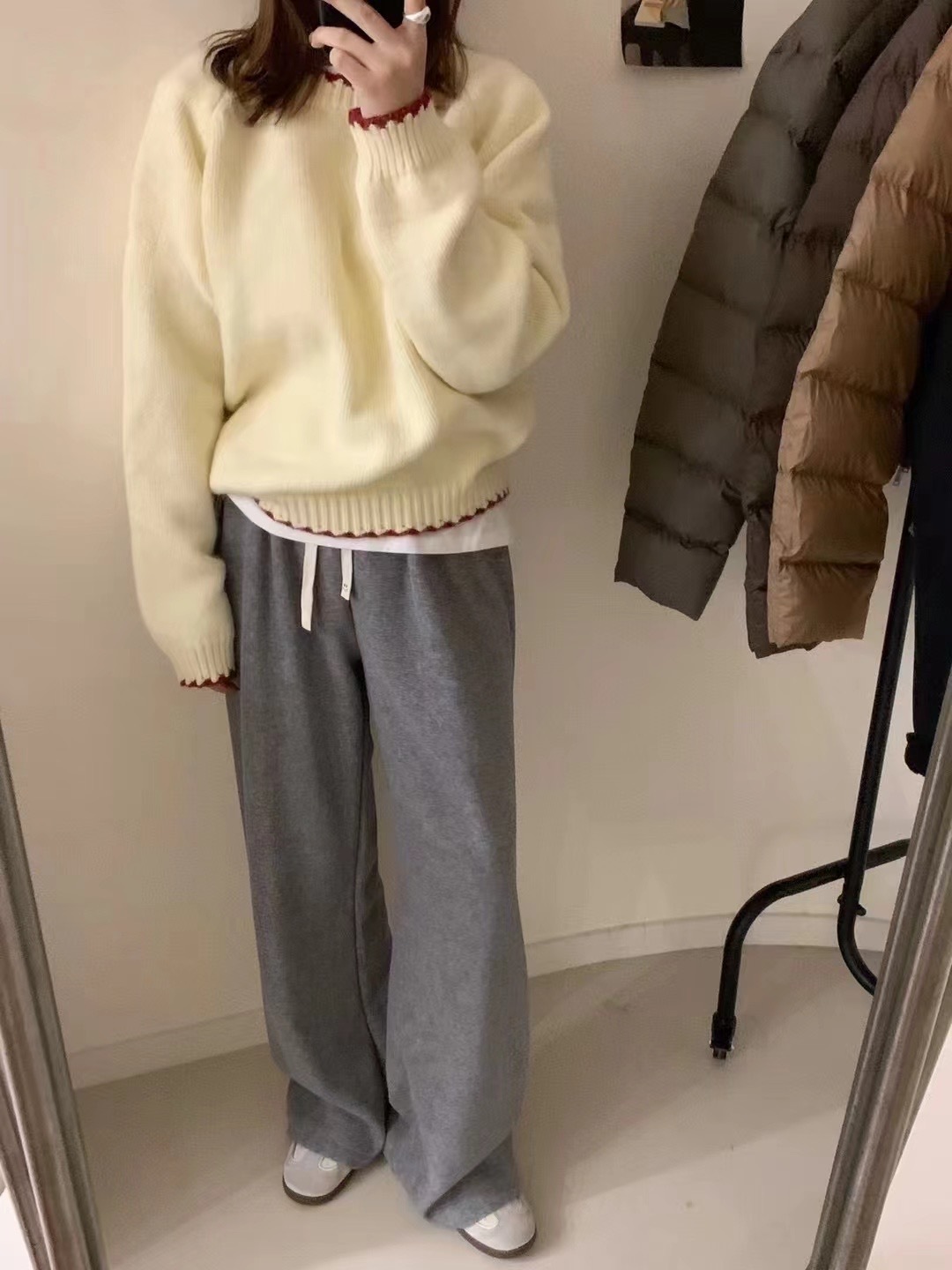 【YW】无忧购韩版温柔风撞色勾边圆领套头毛衣女宽松百搭针织衫8116#(截单后5-7天发货)