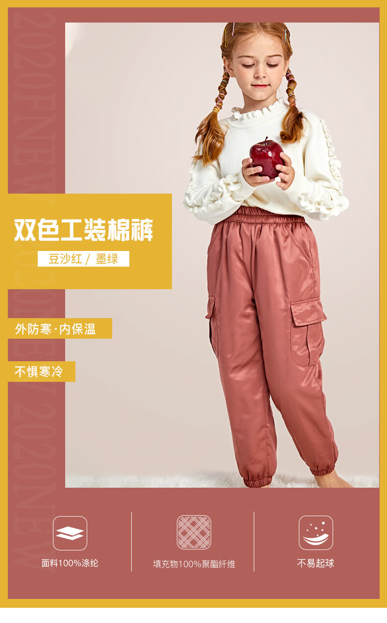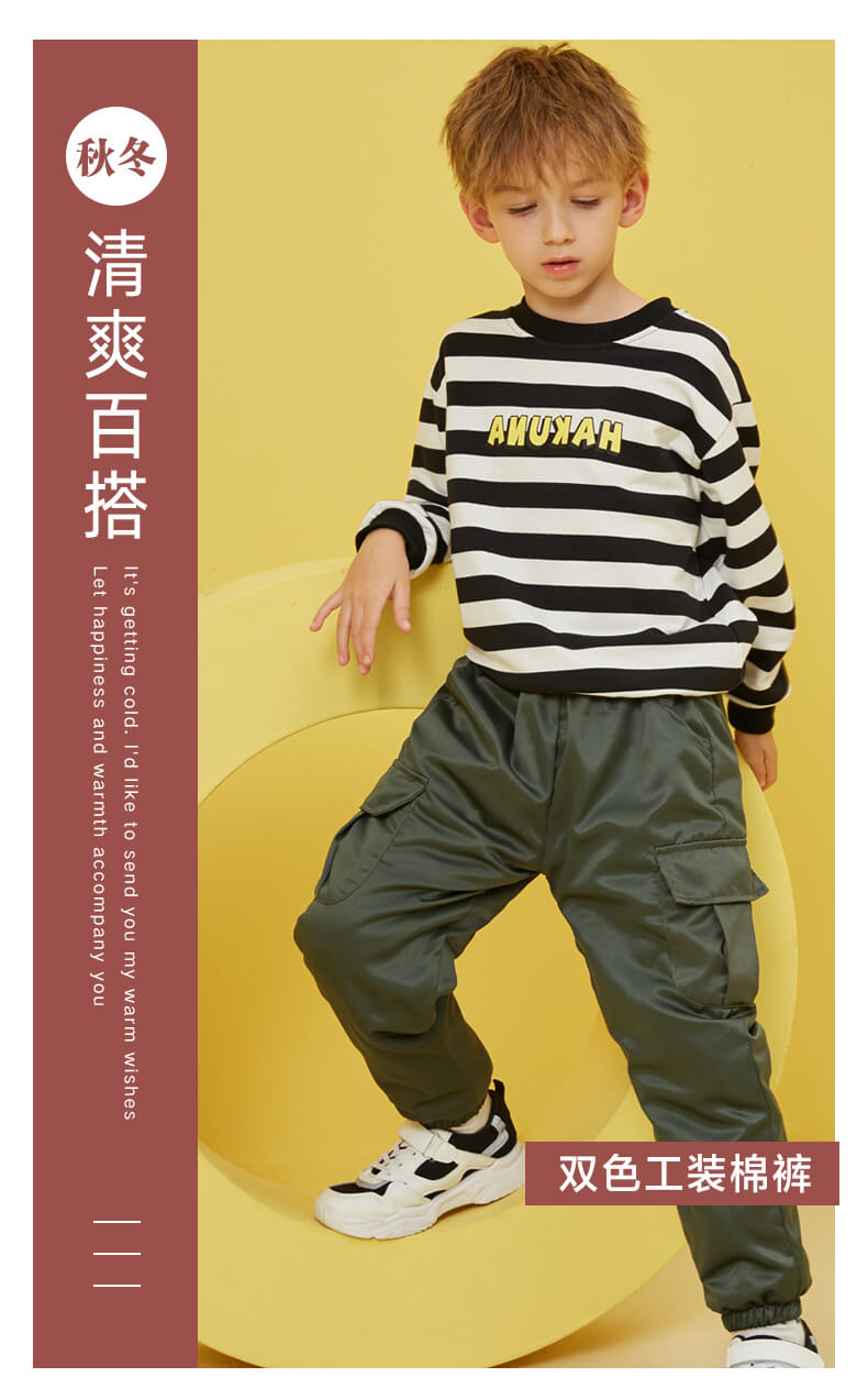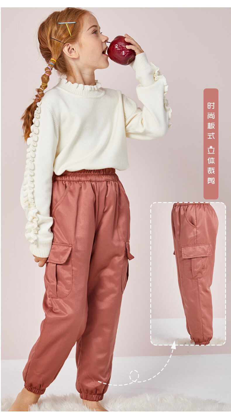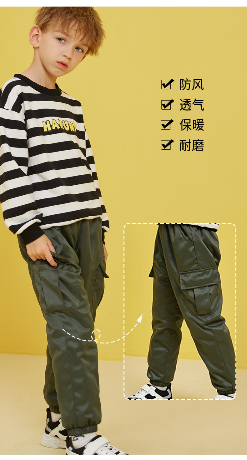 龙之涵 中小童全棉工装棉裤 贡缎夹棉裤子