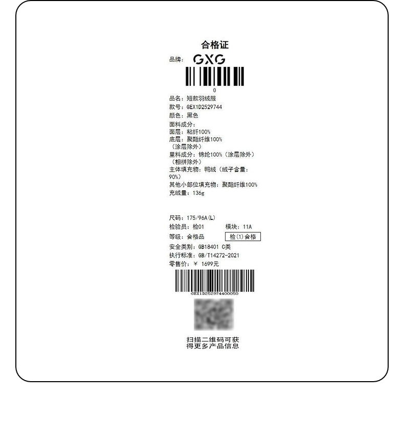 GXG男装 黑色PU直充短款羽绒服 冬季热卖羽绒服GEX1D2529744