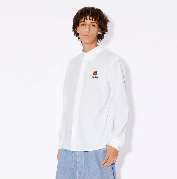 KENZO 高田贤三 男士“BOKE FLOWER”徽章刺绣棉质长袖衬衫 白色 FD55 CH410 9LH 01