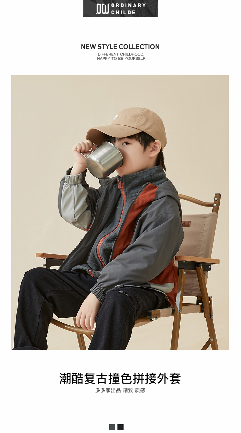 【宠粉专享团购价149.9元】多多家男童外套春秋款儿童冲锋衣三合一摇粒绒内搭男孩秋装上衣潮8268