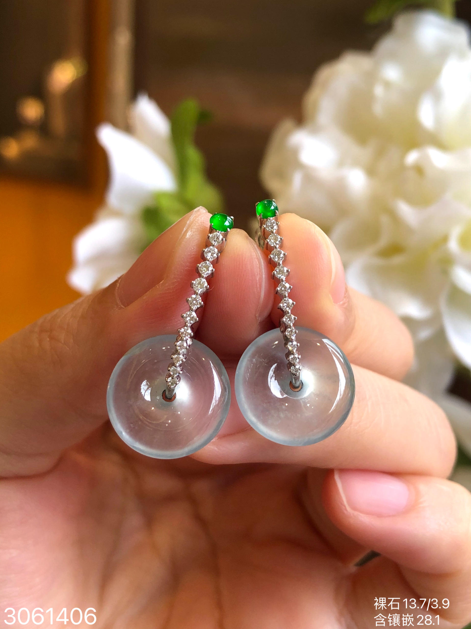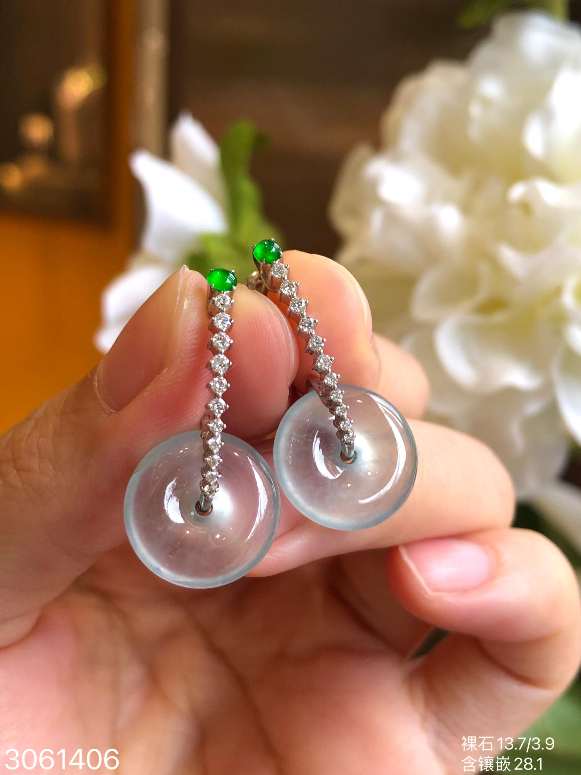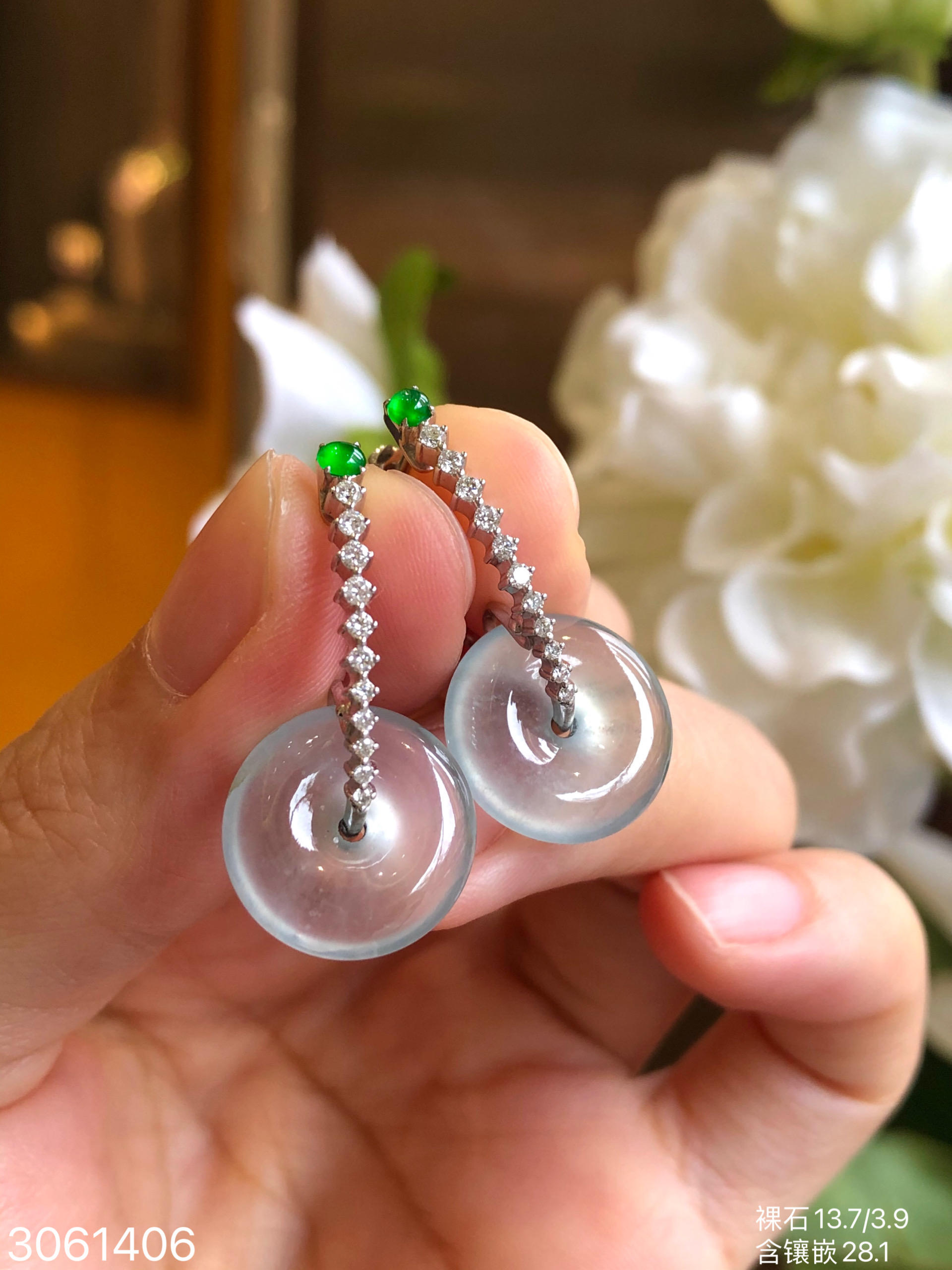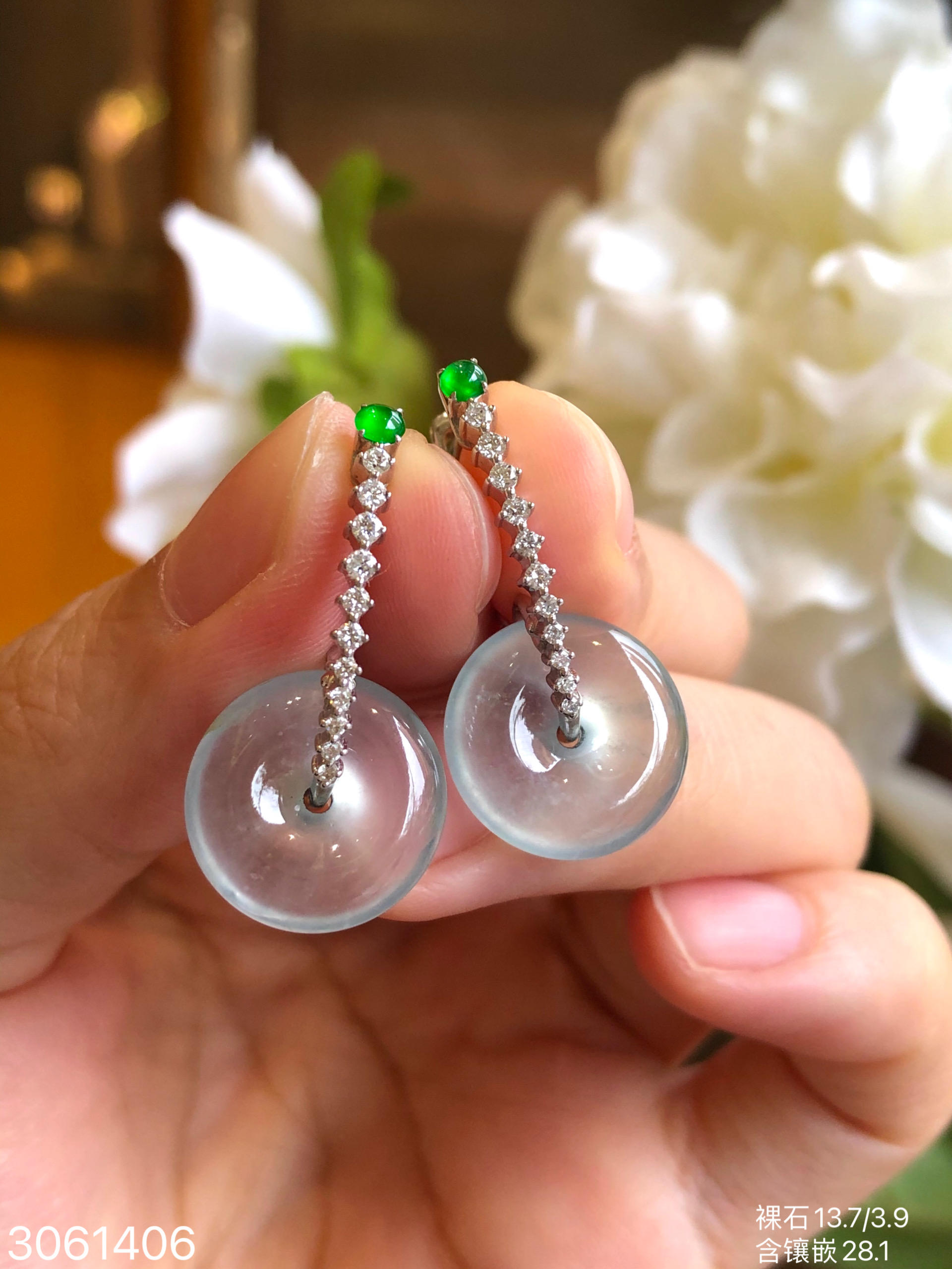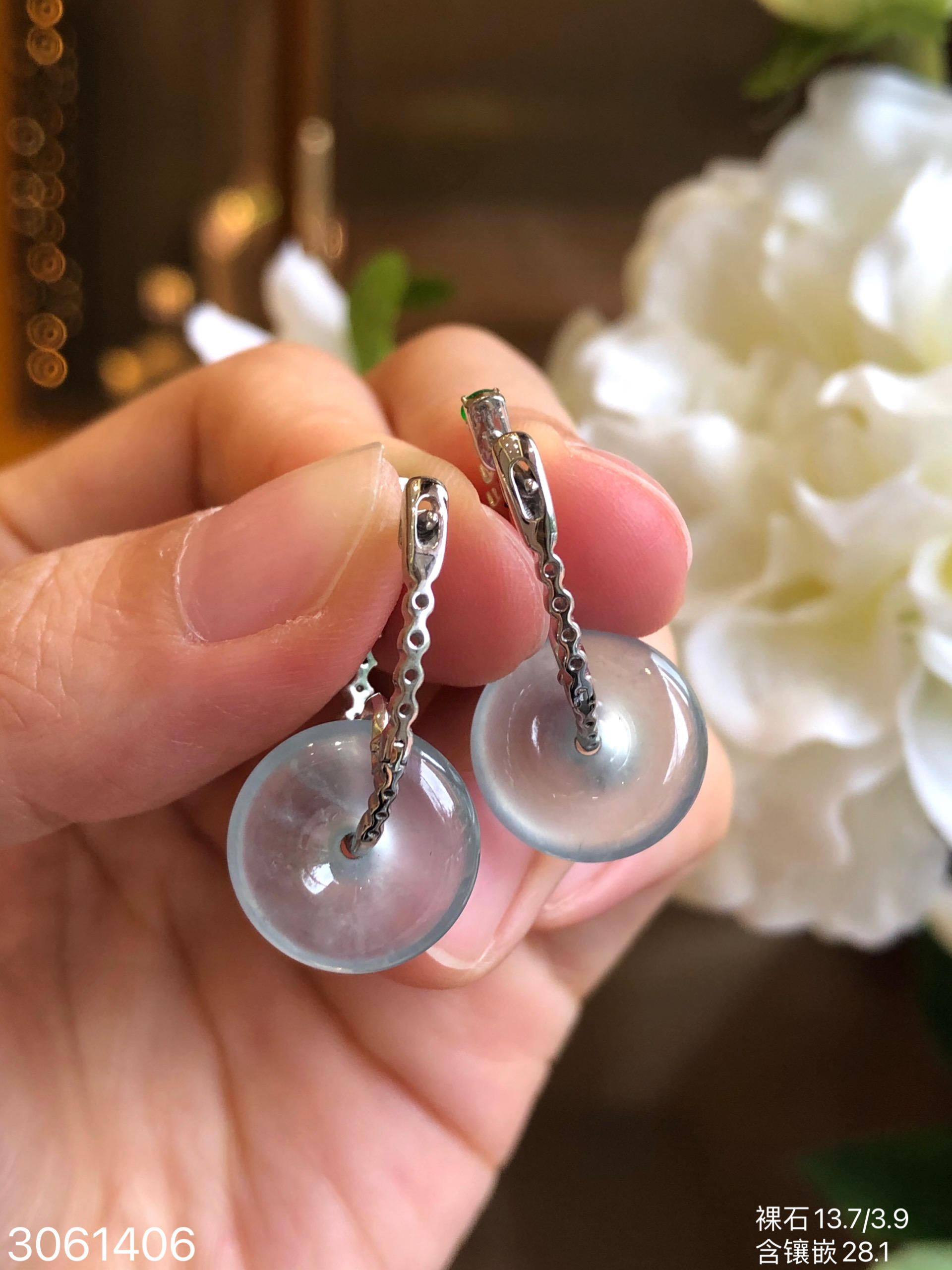 3061406,玻璃平安扣耳坠。具体价格微信咨询