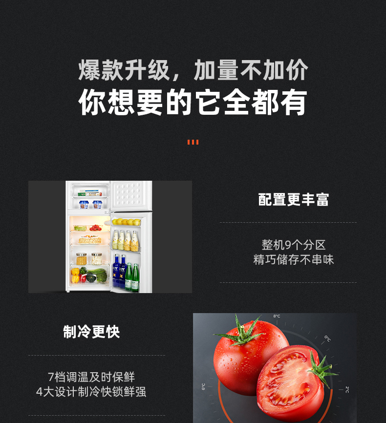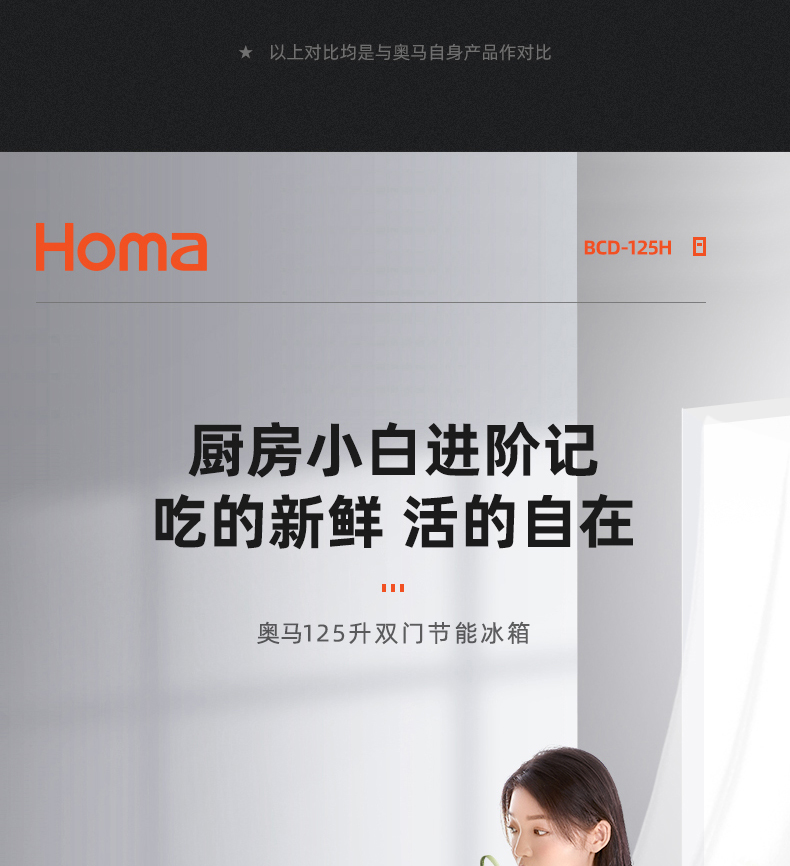 【下单前请先与客服联系】奥马(Homa) 125升 双门小冰箱 家用小型电冰箱 租房冷藏冷冻双开门 省电 环保内胆 白色 BCD-125H