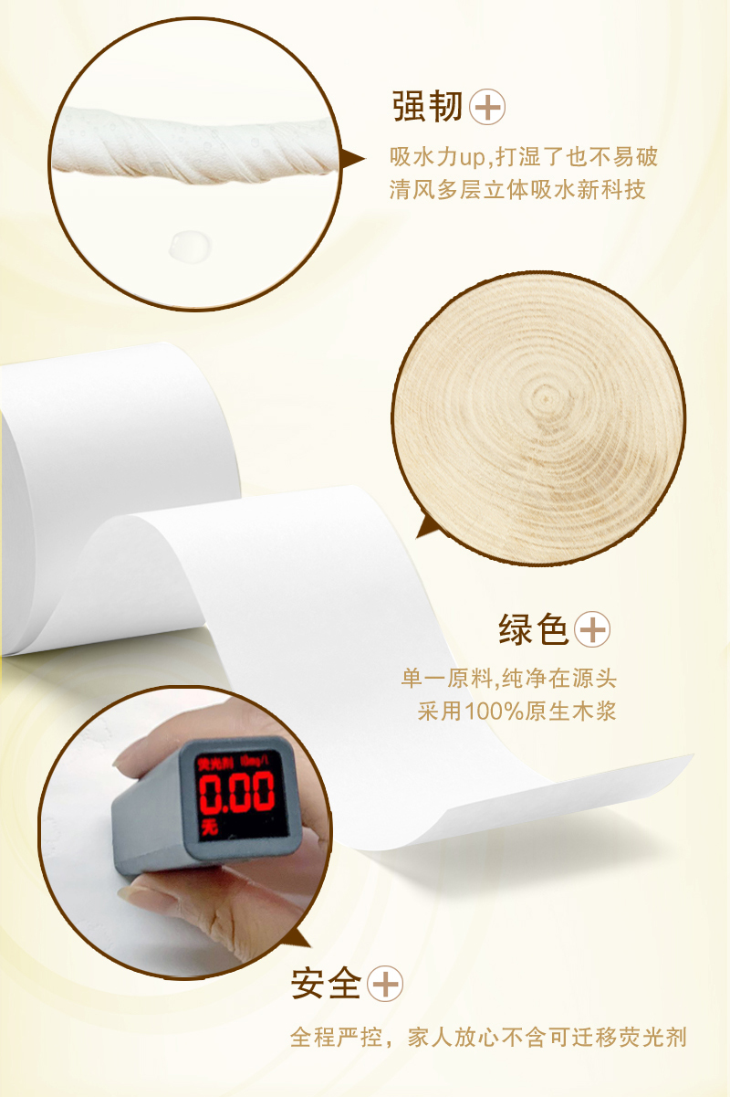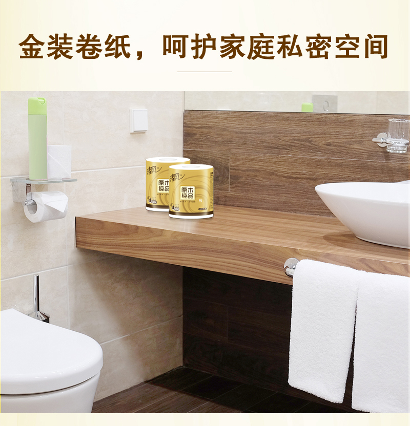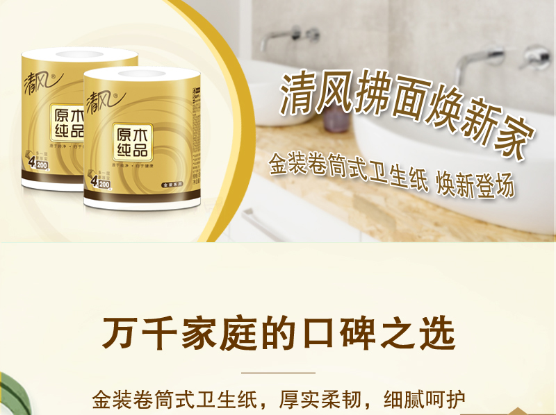 清风(APP)卷纸 原木纯品金装系列 卫生纸4层200克*10卷