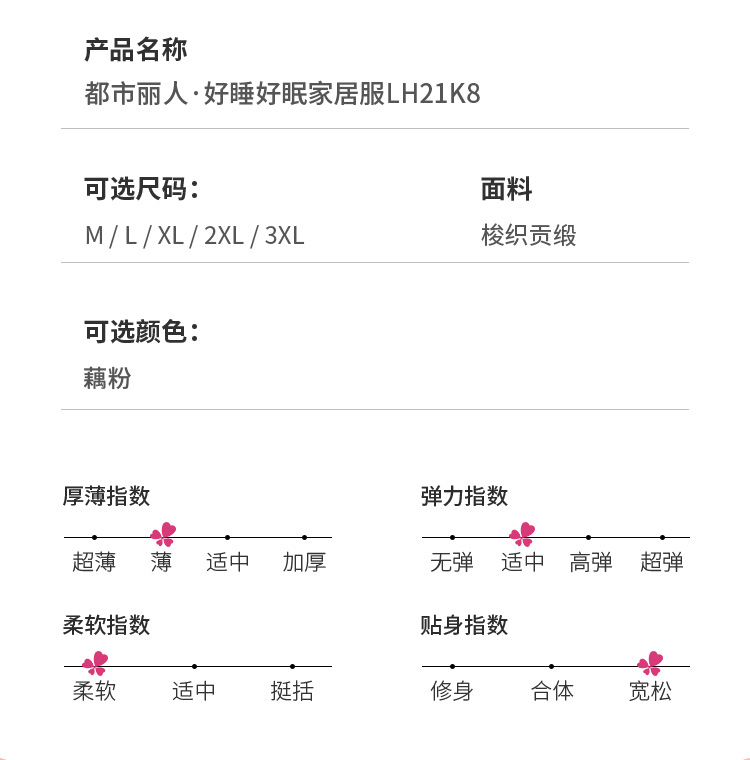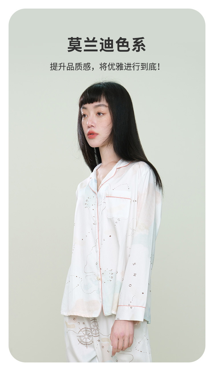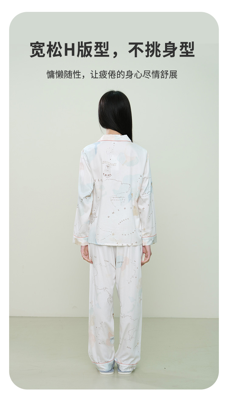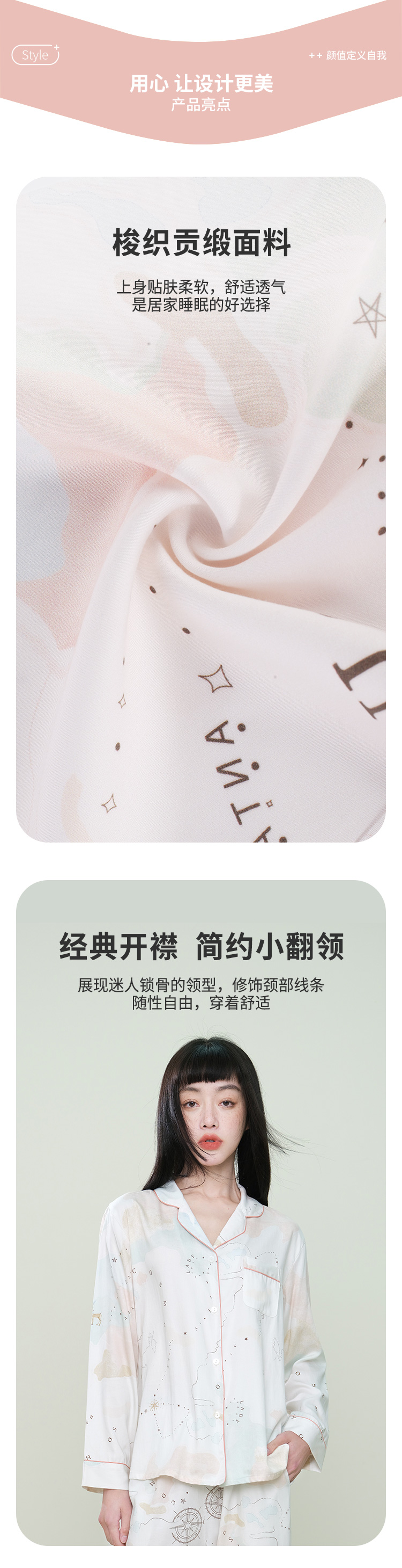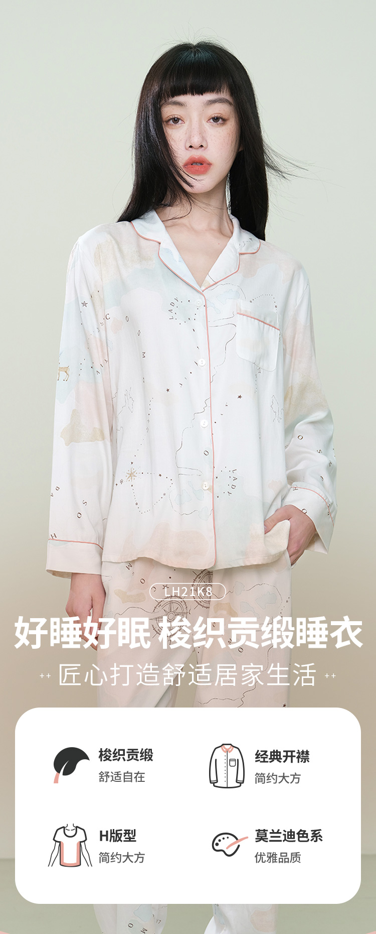 都市丽人好睡好眠女士梭织棉套装梭织贡缎薄家居服长袖睡衣LH21K8