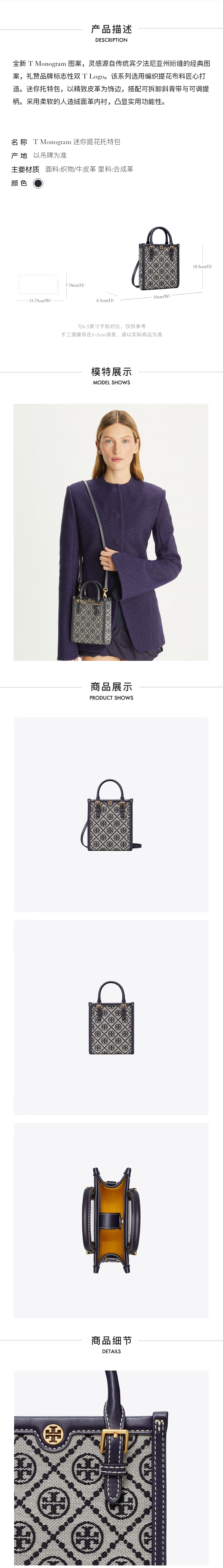 【限量5单】Tory Burch/汤丽柏琦 T MONOGRAM 迷你提花斜挎琴谱包 海军蓝 -w 香港直邮 送礼盒礼袋 清关约7个工作日