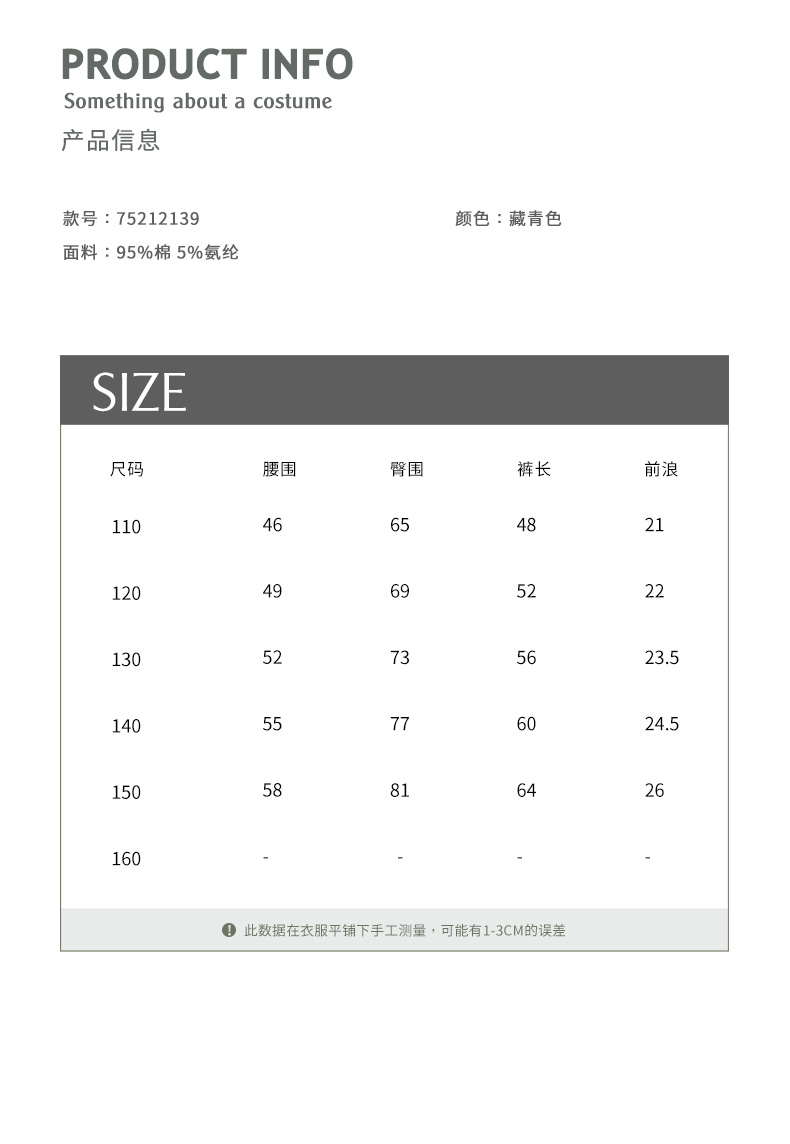 | 裤子分类: 普通休闲裤 | 安全等级: B类 |