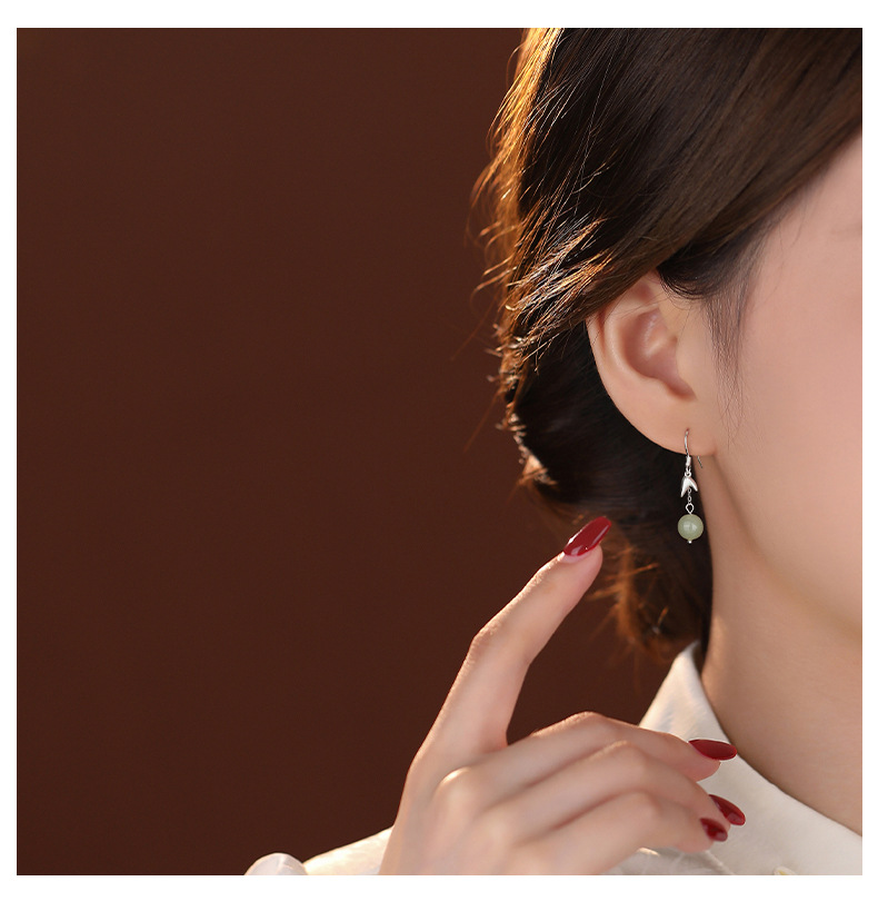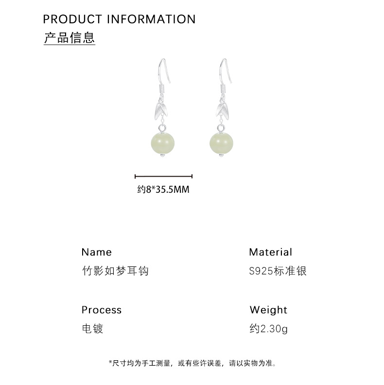 【江畔袅袅】s925纯银流苏和田玉耳饰【YXS-E5215】