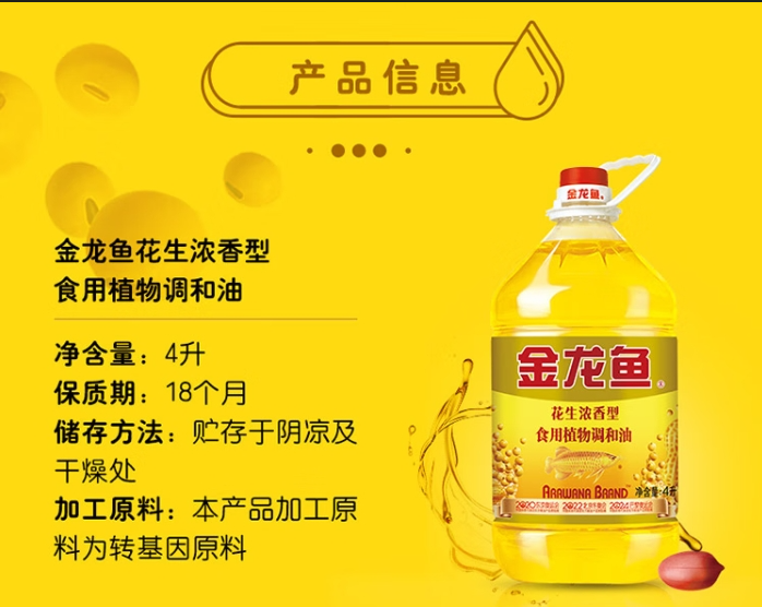 (米+油组合)金龙鱼花生浓香型食用植物调和油4L+湄菩诗泰上茉莉香大米5kg/袋