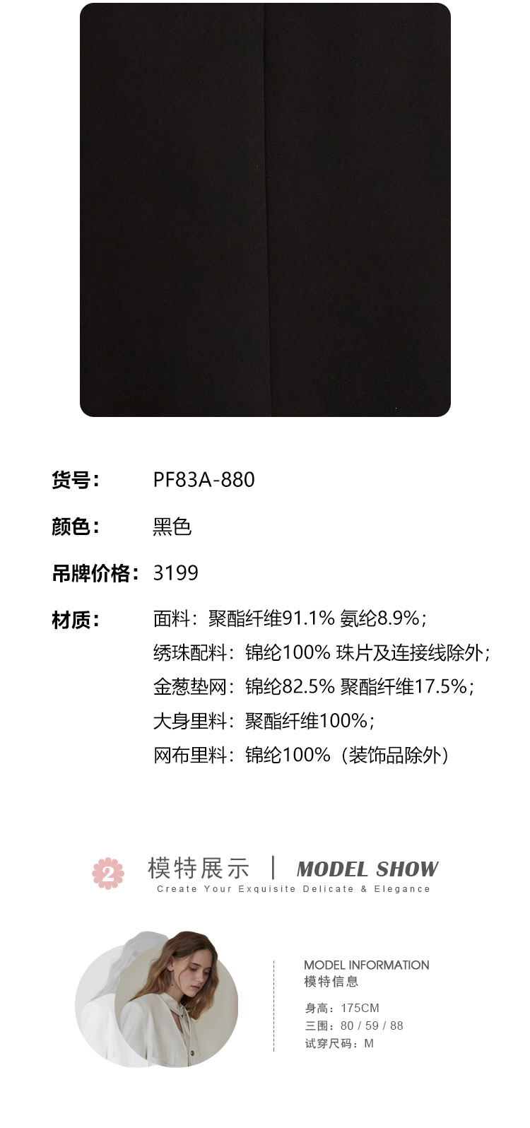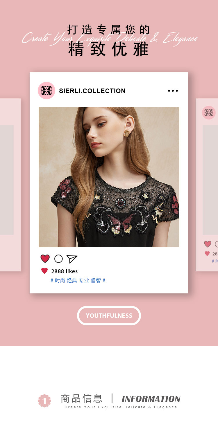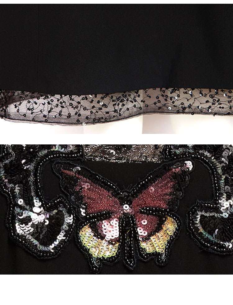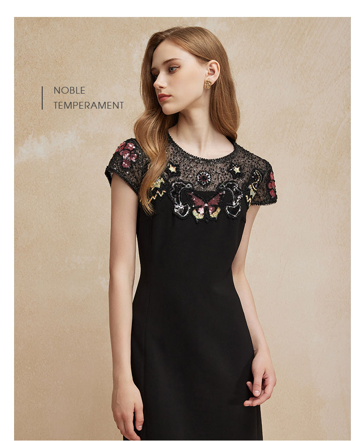 PF83A斯尔丽瑟俪夏季新款高贵优雅蕾丝珠片时尚绣花A摆小黑裙礼裙
