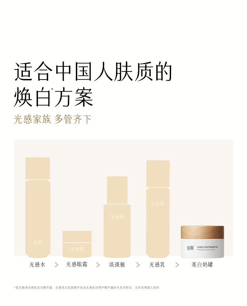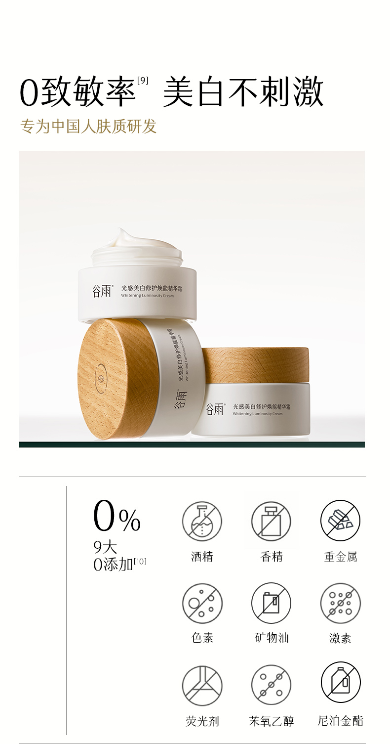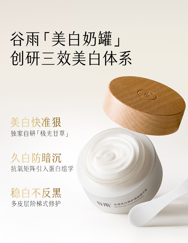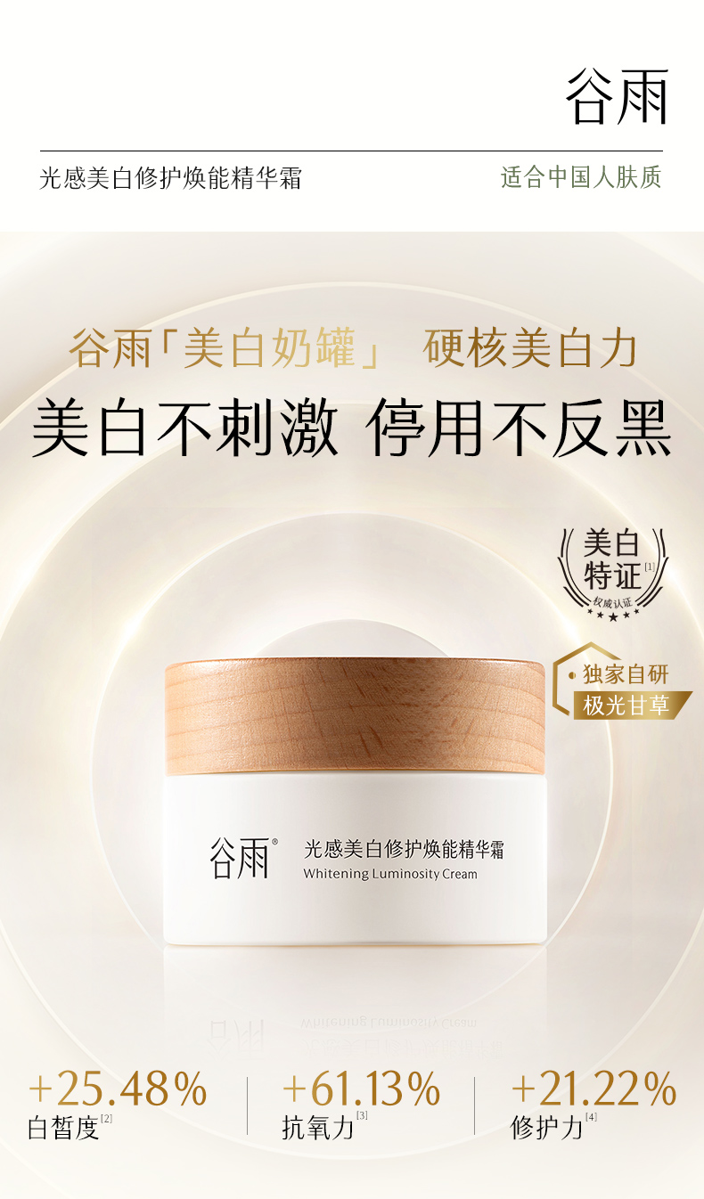 - 谷雨,更适合中国人肤质的植萃美白。专研中华珍稀美白植萃光甘草定,深入研究中国人肤质特点,打造中国女性独有的仙气白。