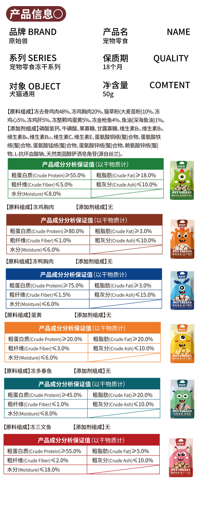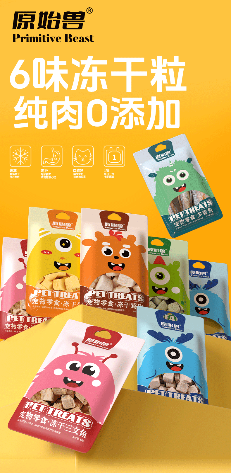原始兽冻干零食便携装 多口味 门店爆款 0添加 犬猫零食 整箱=200袋