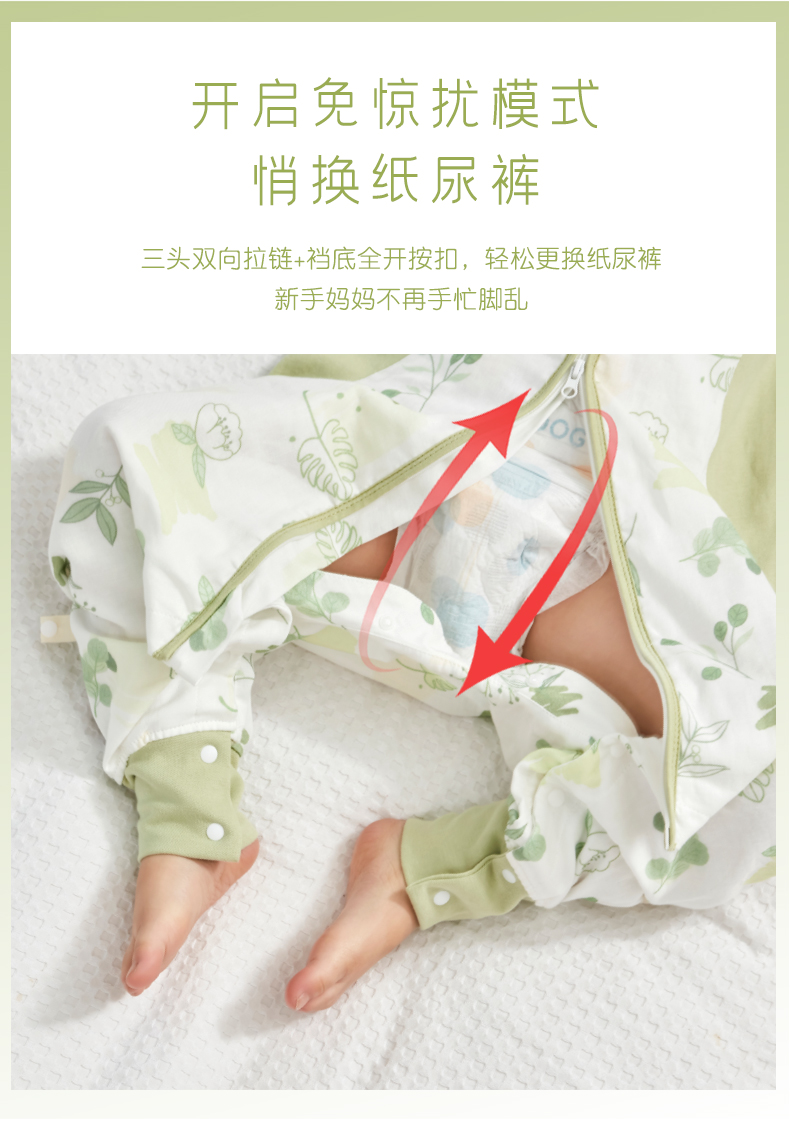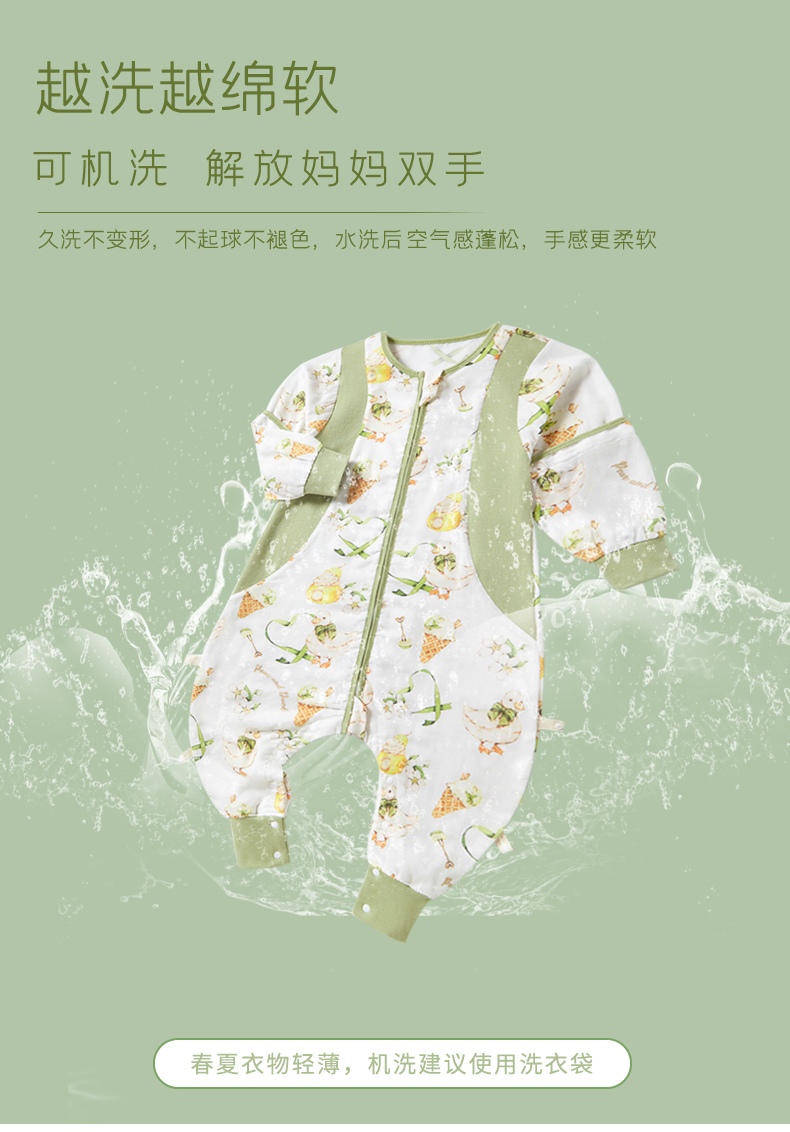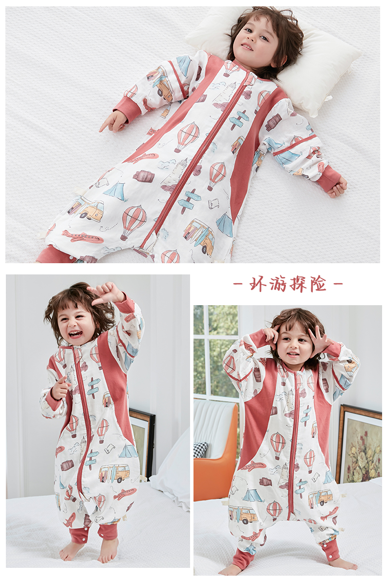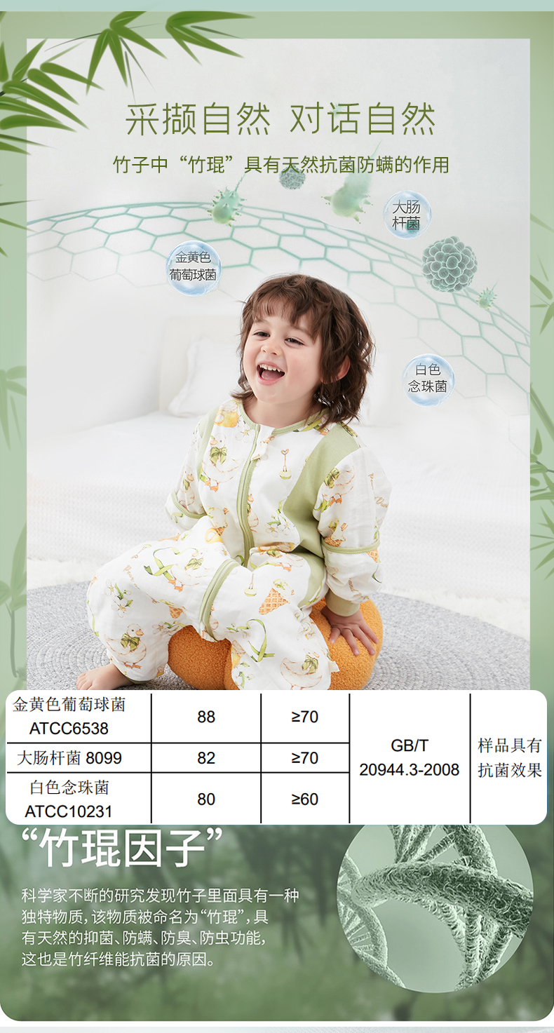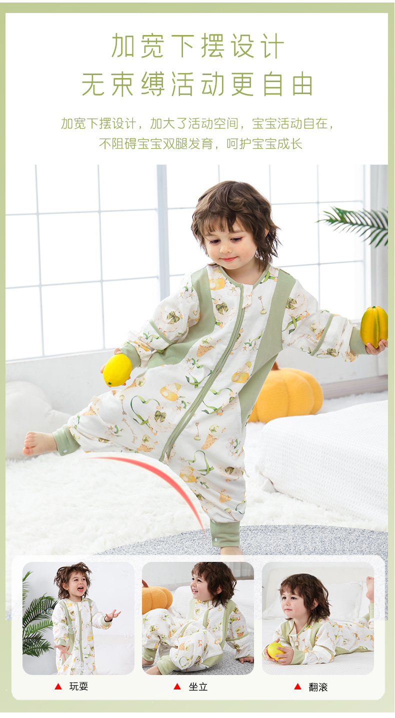 盼盼树儿童春夏儿童自然清凉柔竹面纱吸湿快干透气不闷睡袋婴儿竹纤维分腿睡袋宝宝抗菌睡衣可拆袖80-120