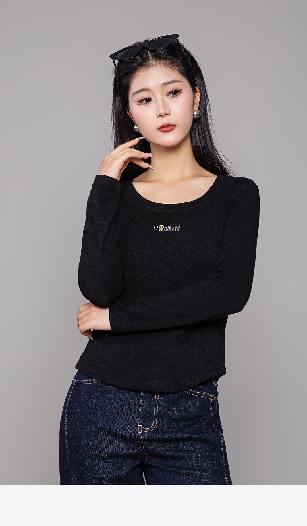 冬上新修身显瘦字母刺绣长袖打底衫1254015 商品图0