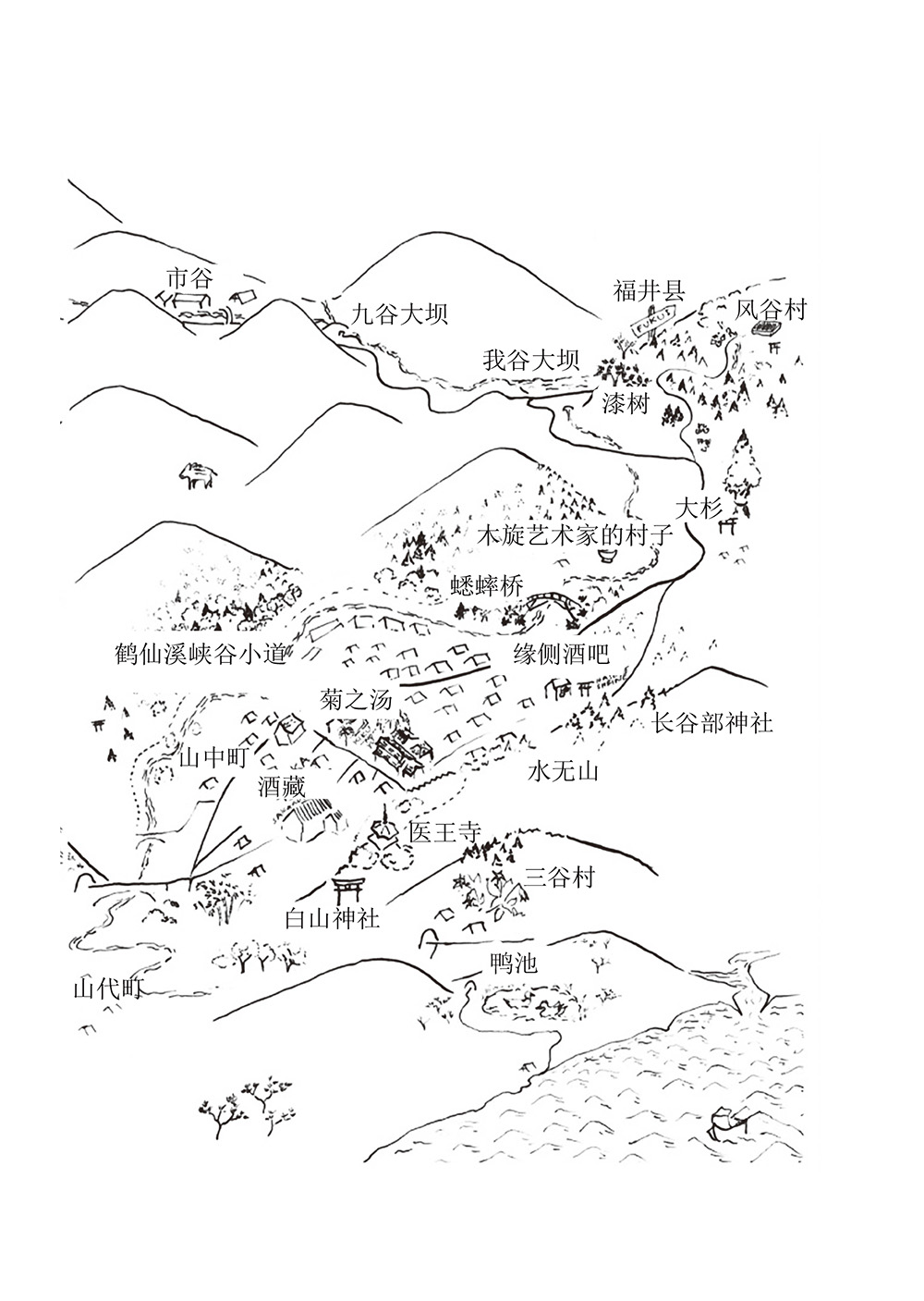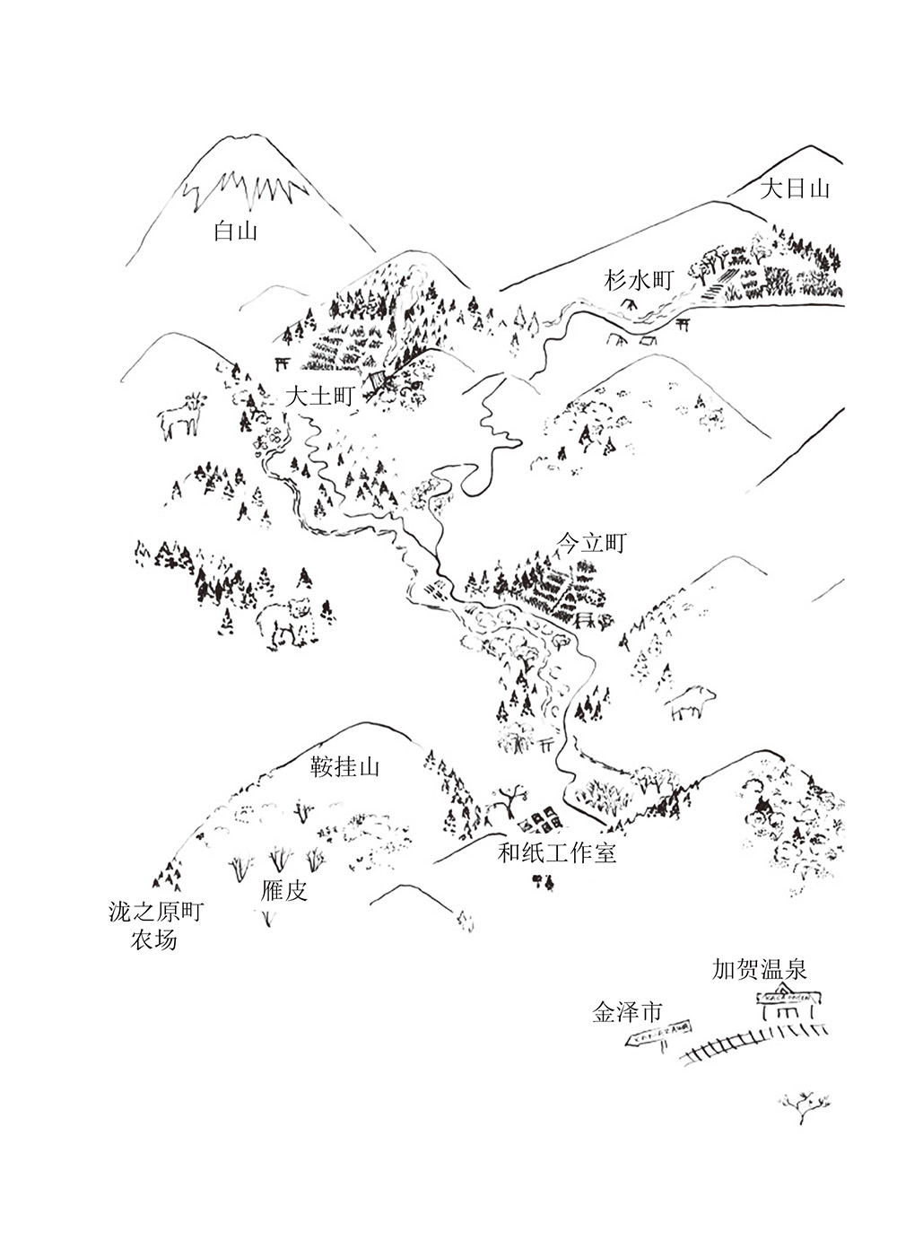 - 作者自绘多幅线描插图,介绍山中町的动植物或手工艺品