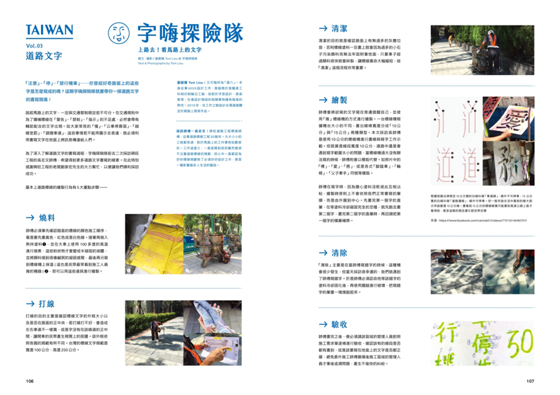 此外,由蒙納字型總監小林章執筆的「歐文羅馬體製作方法」、InDesign歐文排版教學、負空間與字體排印的關係,以及2017中国台湾文博會機場指標改造活動實錄等,以上豐富內容,絕對可以滿足所有對字型的好奇心及求知慾,更進一步打開對字型的想像及理解。