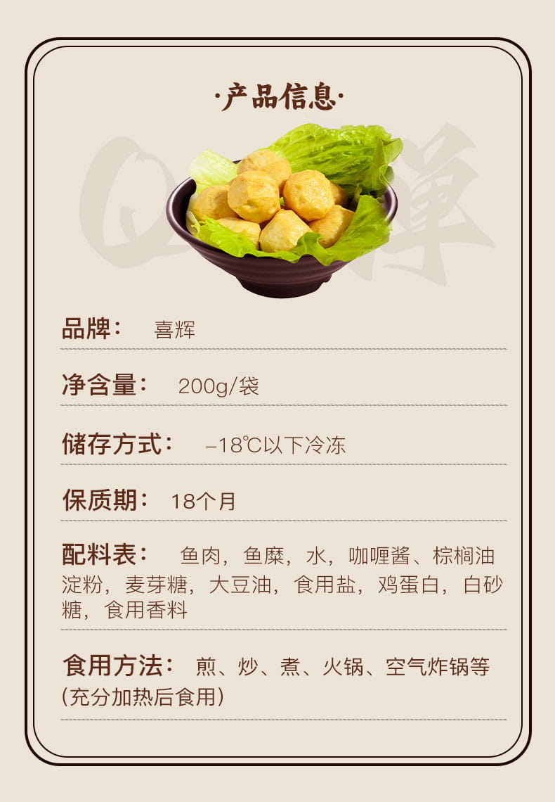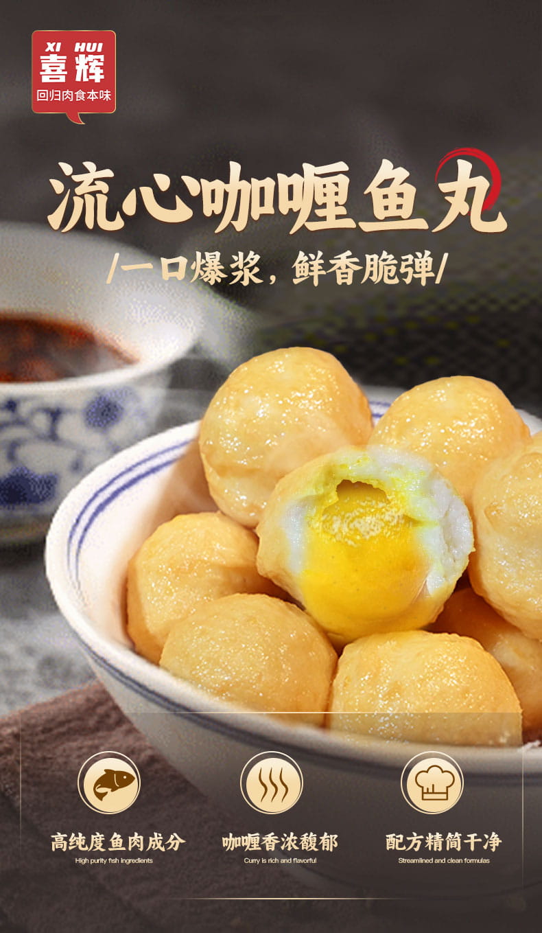 【真实鱼含量】喜辉流心咖喱鱼丸 水煮烧烤火锅食材爆浆脆爽鱼香弥漫丸子 肉质饱满弹牙筋道日式风味 200g/袋