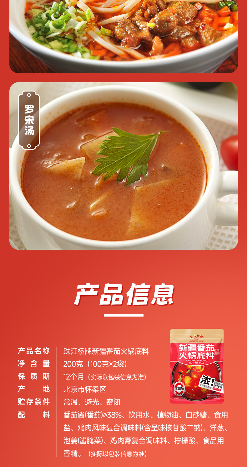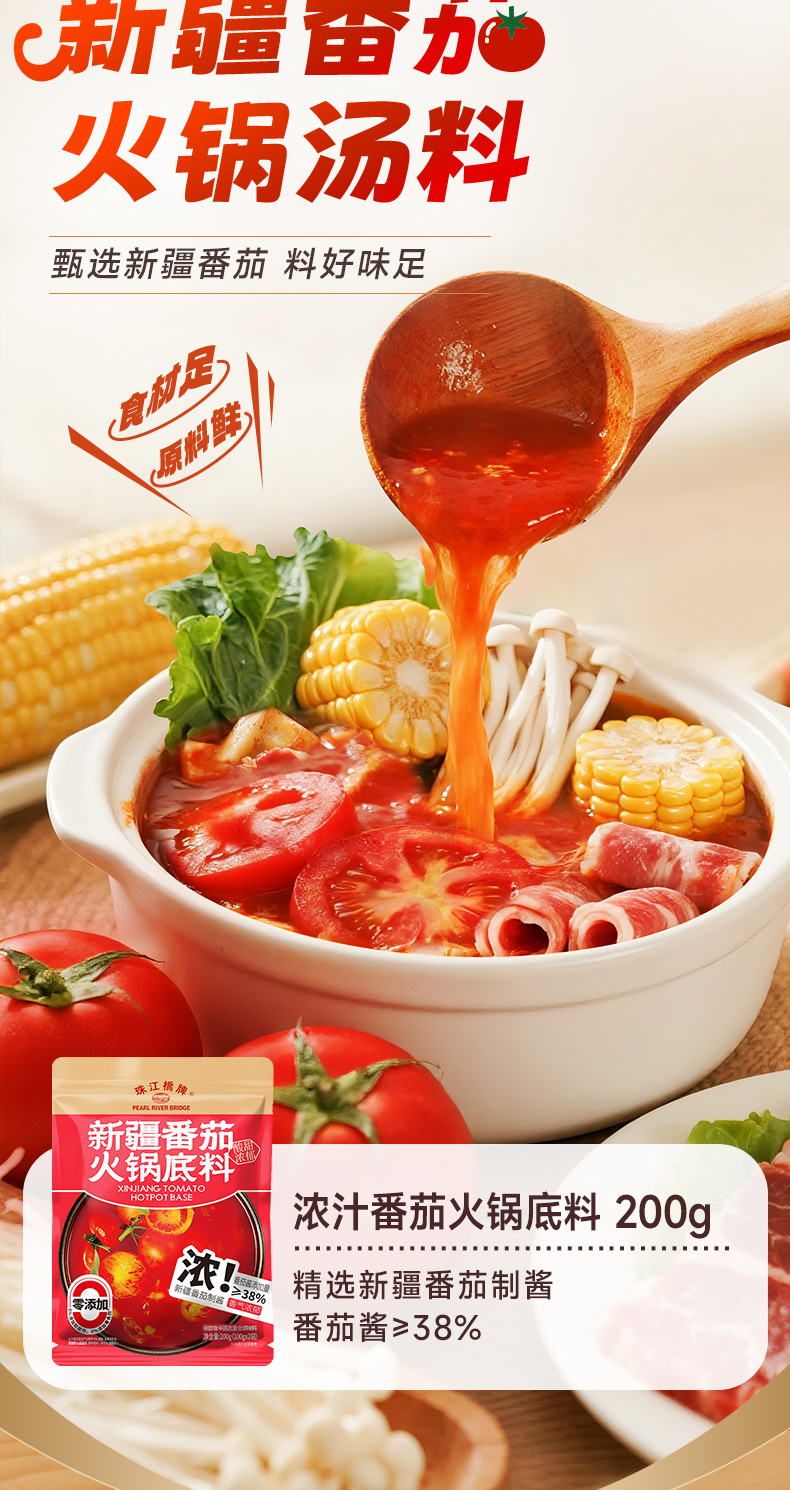 【29.9元3袋】珠江桥牌 3种经典风味组合 广式猪肚鸡汤底/新疆番茄底料/云南菌菇底料 优质火锅汤底底料