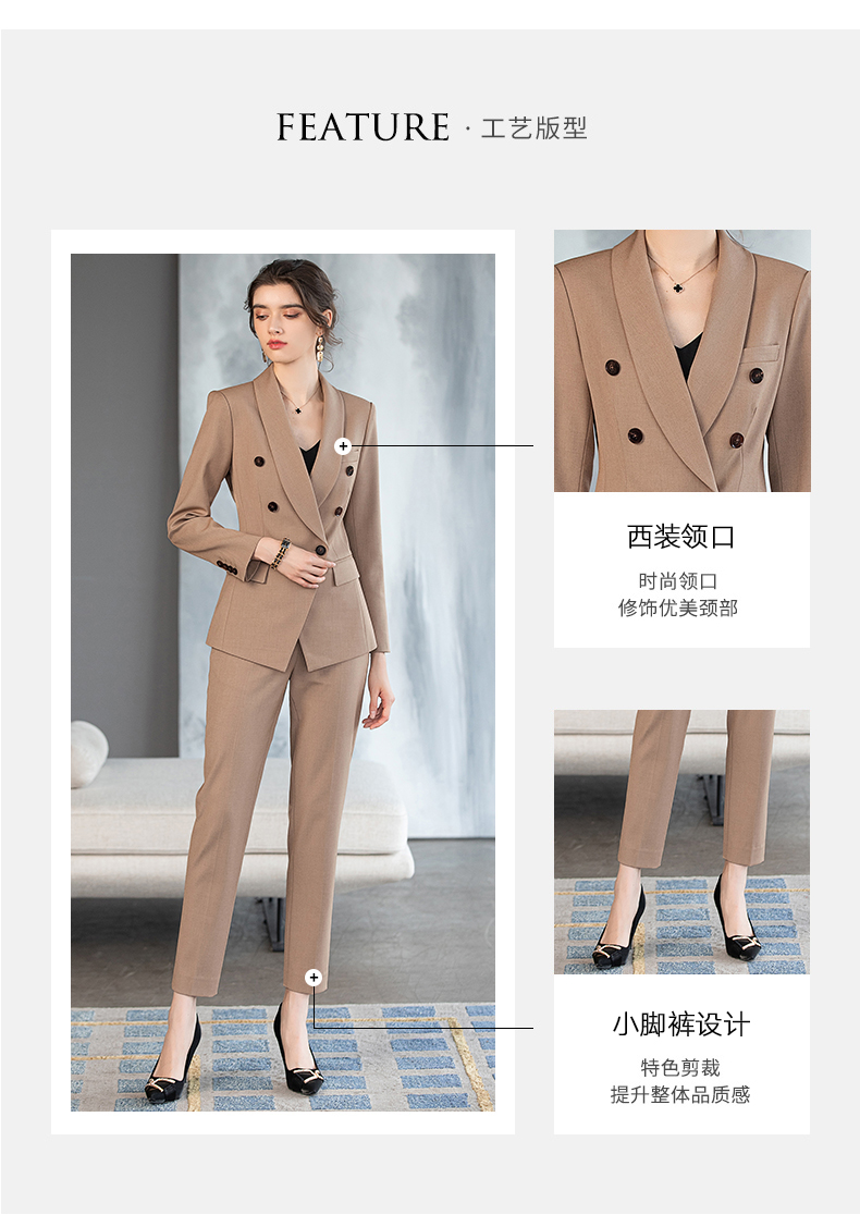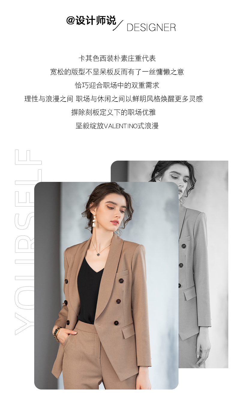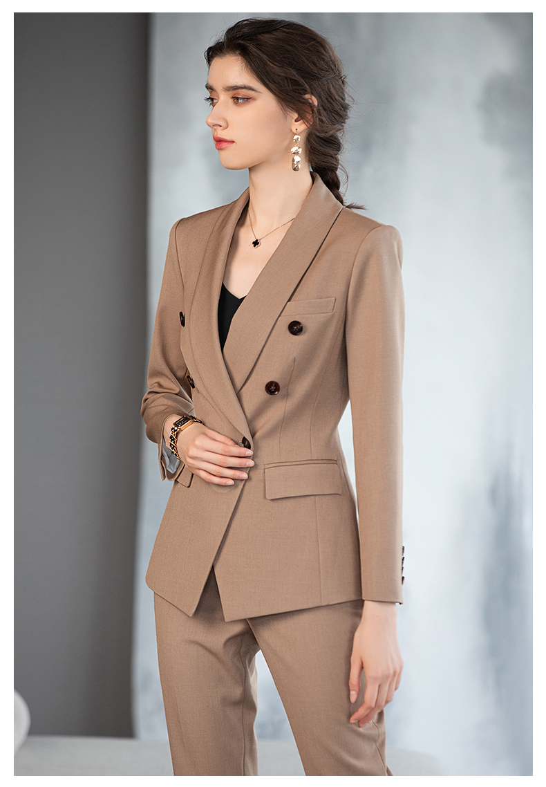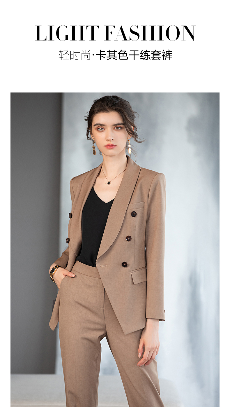 IWY/高端卡其色青果领西服女时尚套装气质职业装双排扣西装秋季正装2231102CP1