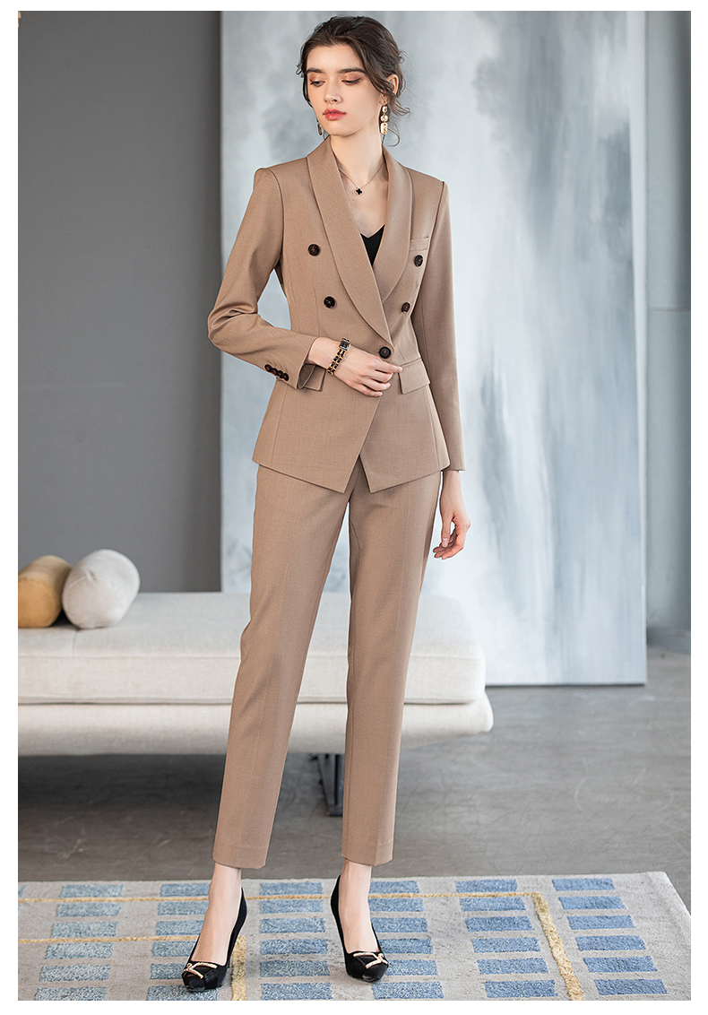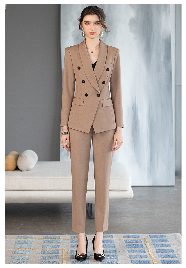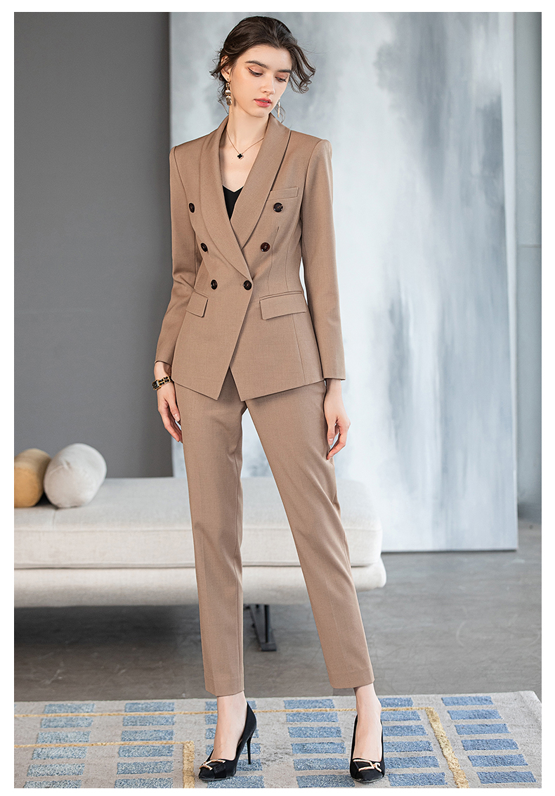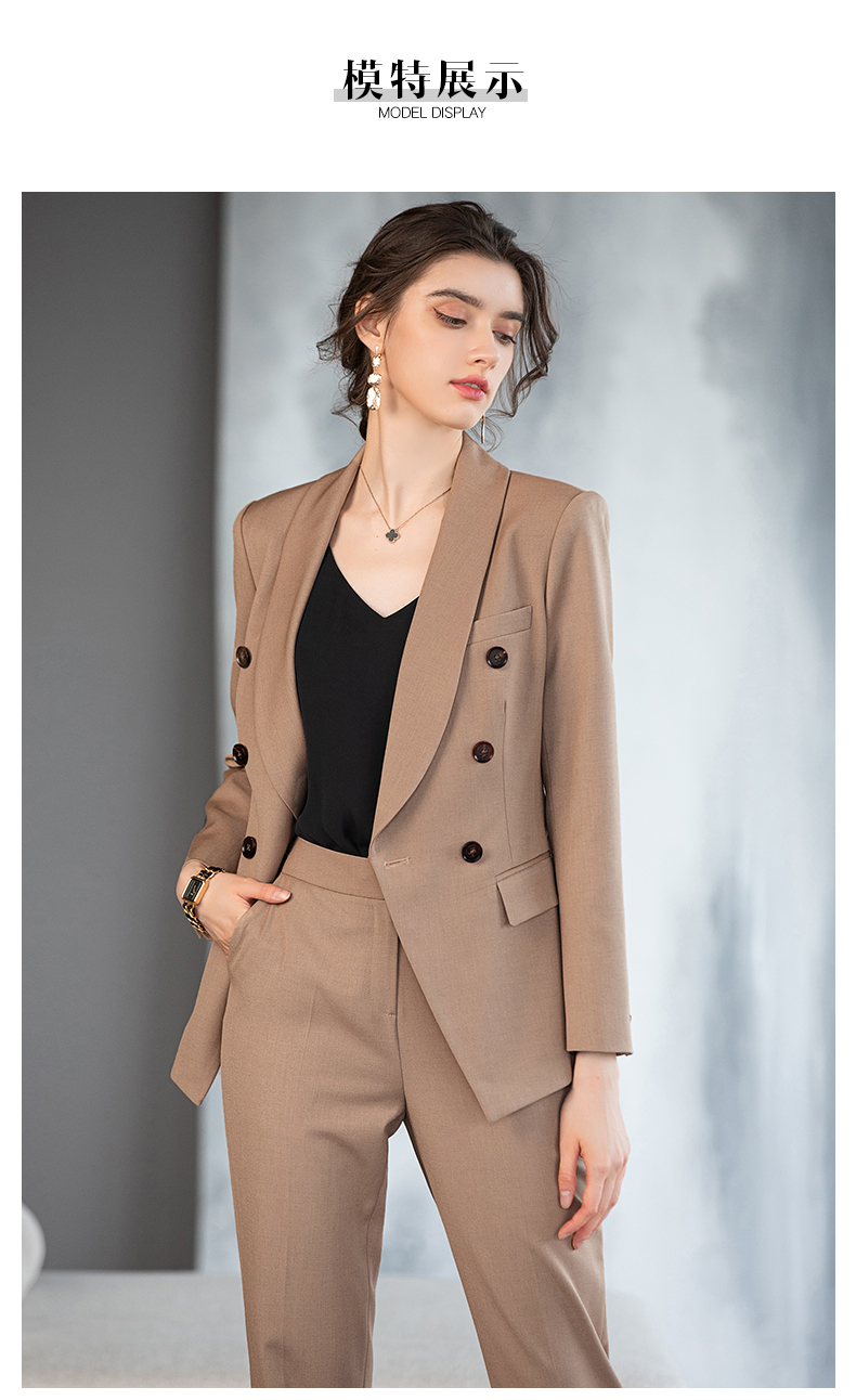 IWY/高端卡其色青果领西服女时尚套装气质职业装双排扣西装秋季正装2231102CP1