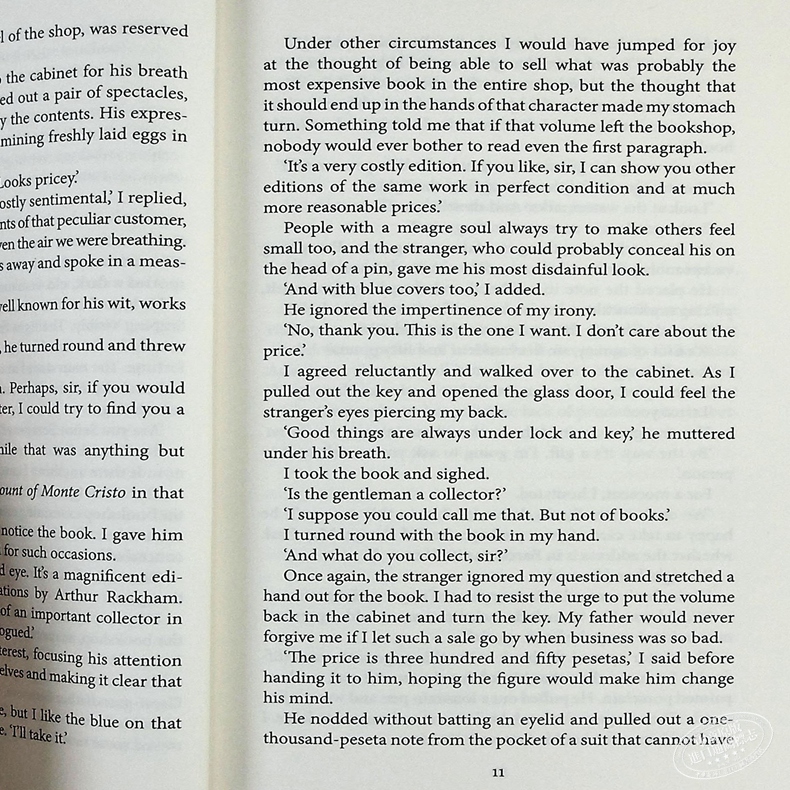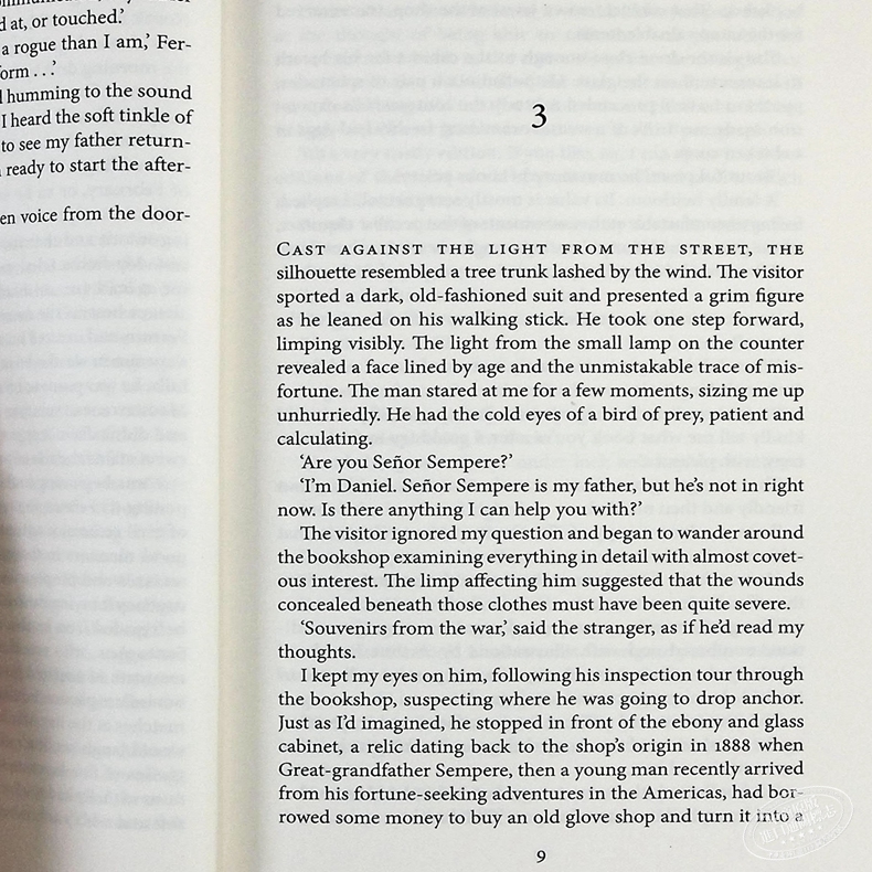 Daniel is alone in the shop one morning when a mysterious figure with a pronounced limp enters. He spots one of their most precious volumes that is kept locked in a glass cabinet, a beautiful and unique illustrated edition of THE COUNT OF MONTE CRISTO. Despite the fact that the stranger seems to care little for books, he wants to buy this expensive edition.