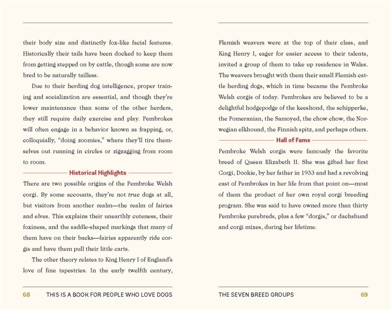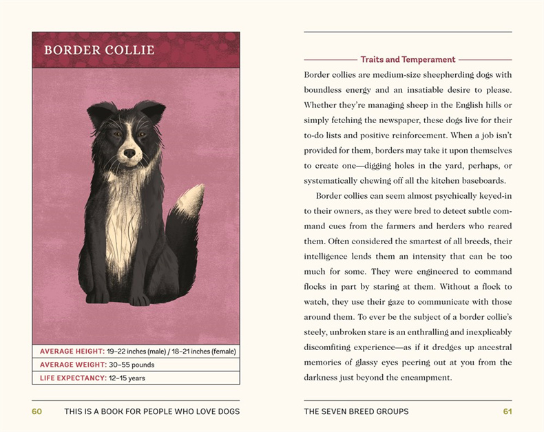 Dog breeds-including collies, corgies, and golden retrievers-are profiled with spirited illustrations that'll leave you aching to bring another dog home. Thoroughly researched and presented in a warm, charming style, This Is a Book for People Who Love Dogs is a must-have for everyone who cherishes their furry friends.