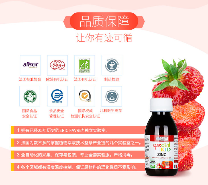 【保税仓】法国ERIC FAVRE埃里克儿童补锌糖浆 125ML