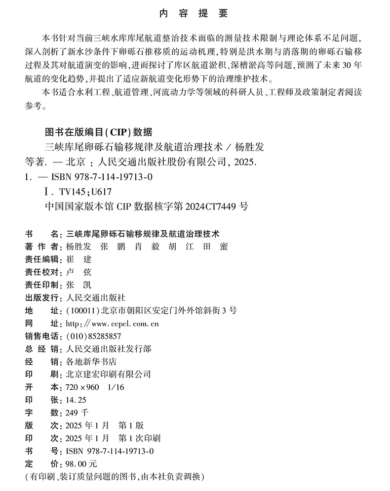 书名:三峡库尾卵砾石输移规律及航道治理技术