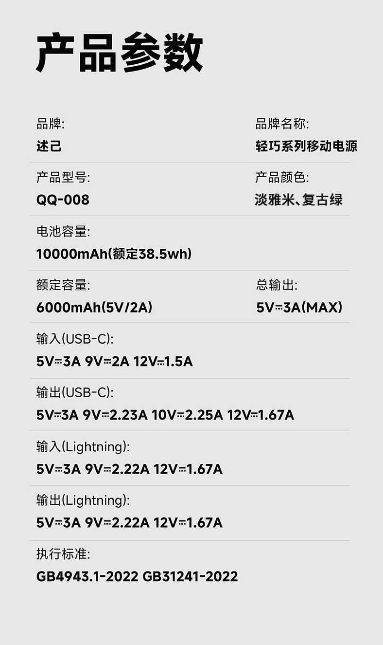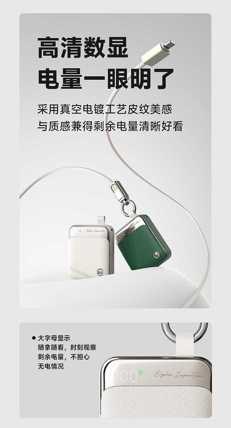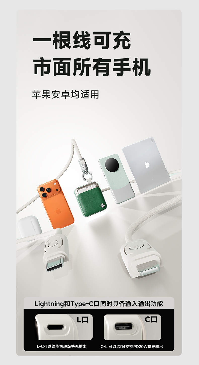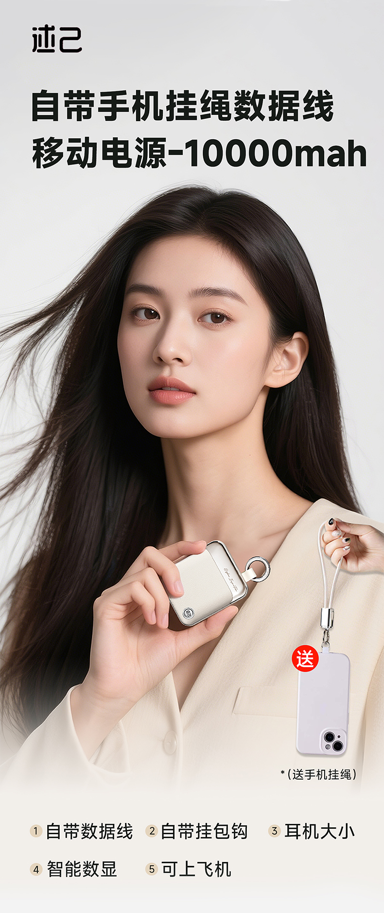 【3C充电宝】述己轻巧充电宝自带线快充超薄便携大容量10000毫安移动电源适用苹果15iPhone华为小米可上飞机