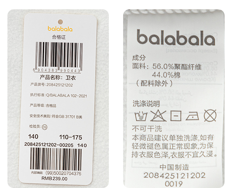 巴拉巴拉balaOne童装儿童卫衣男童女童2025新款冬装加绒休闲上衣