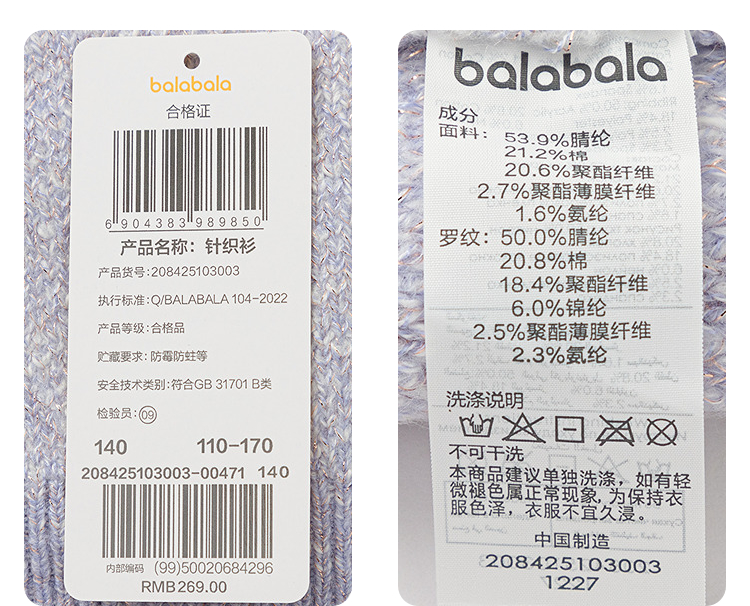 巴拉巴拉balaOne童装女童毛衣儿童2025冬季新款毛衫提花针织衫甜