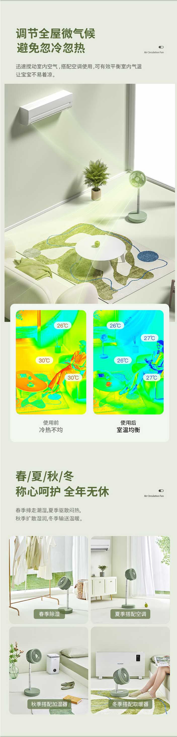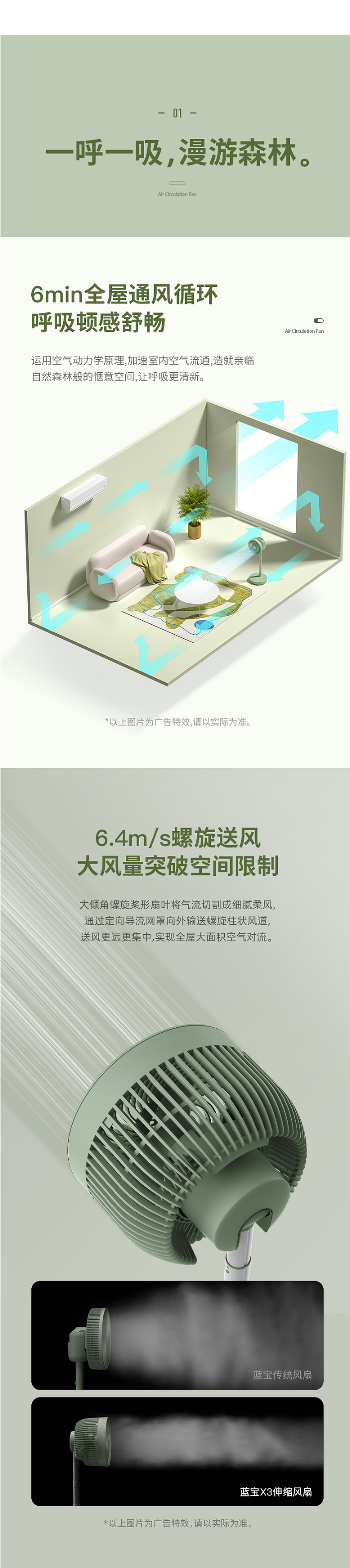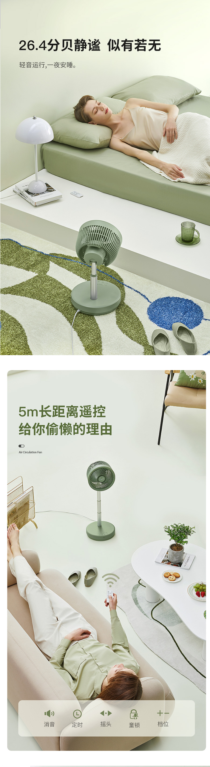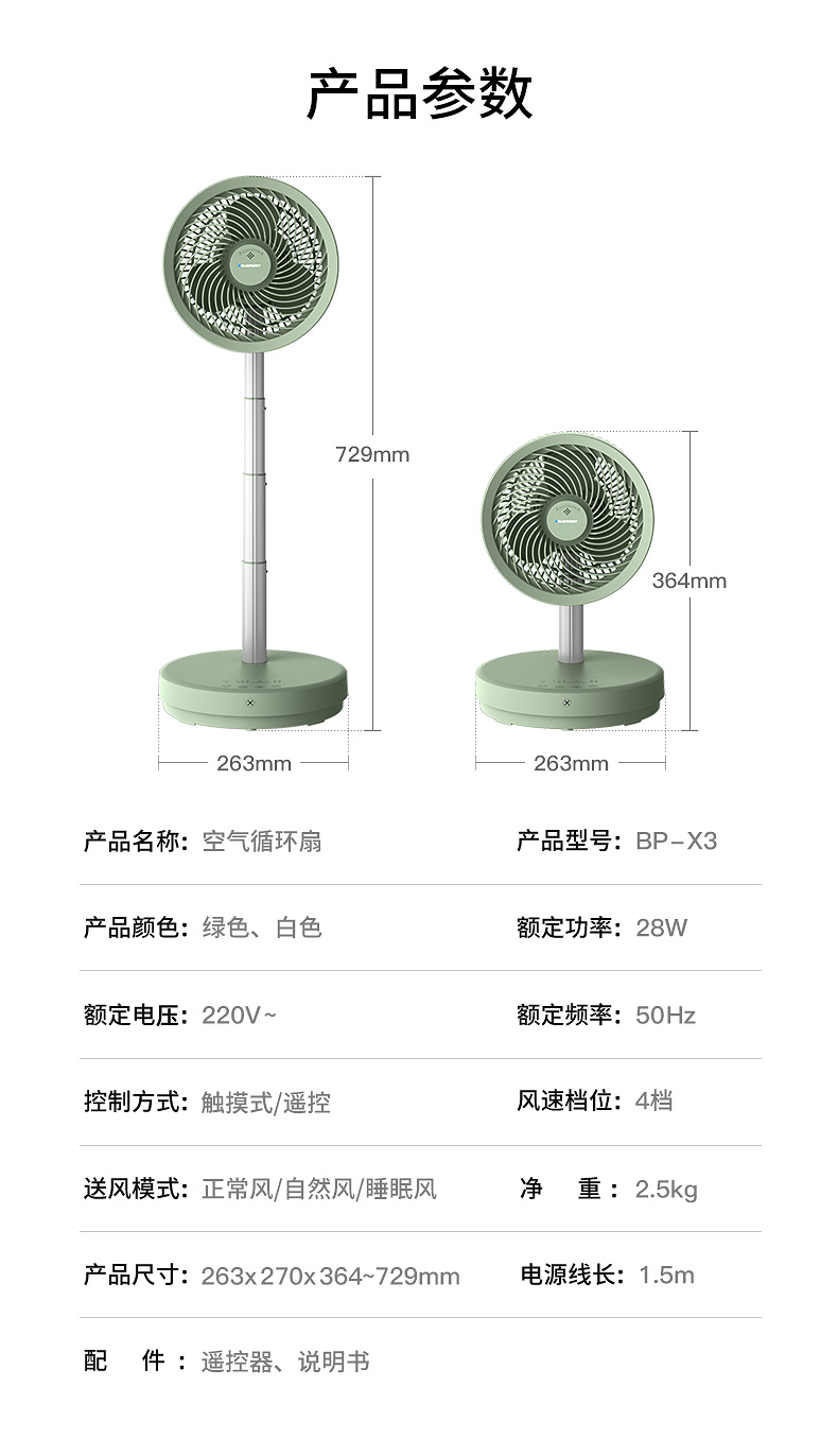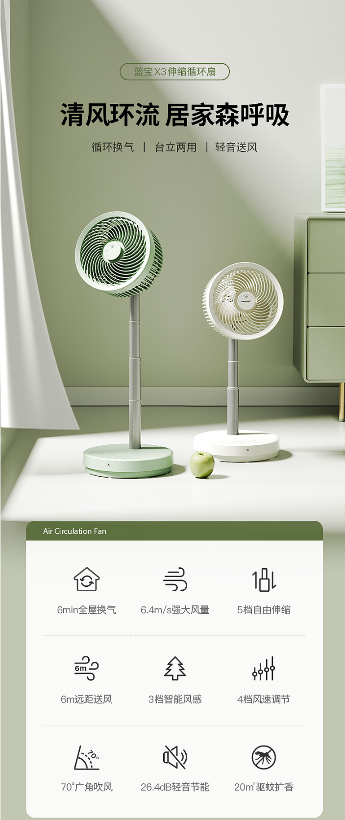 蓝宝空气循环扇家用涡轮对流遥控台地两用式摇头定时落地扇电风扇
