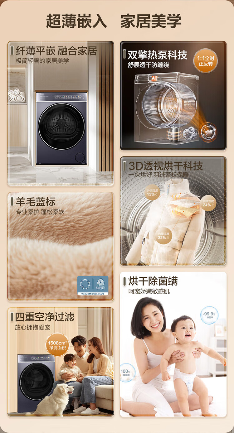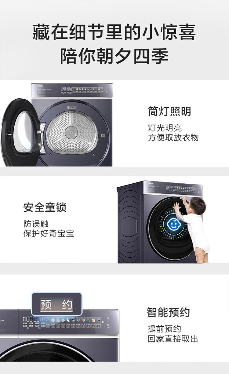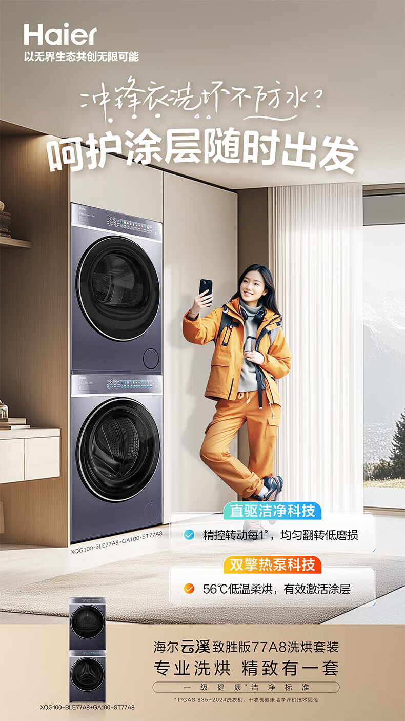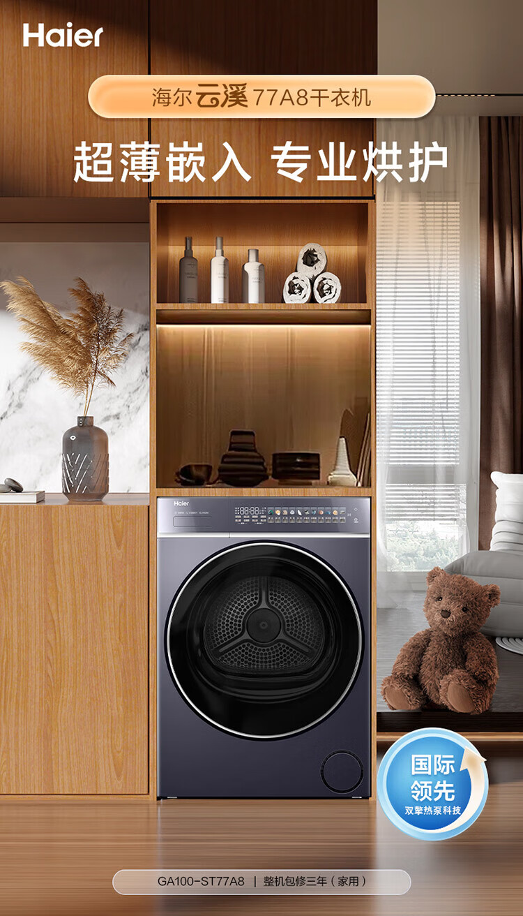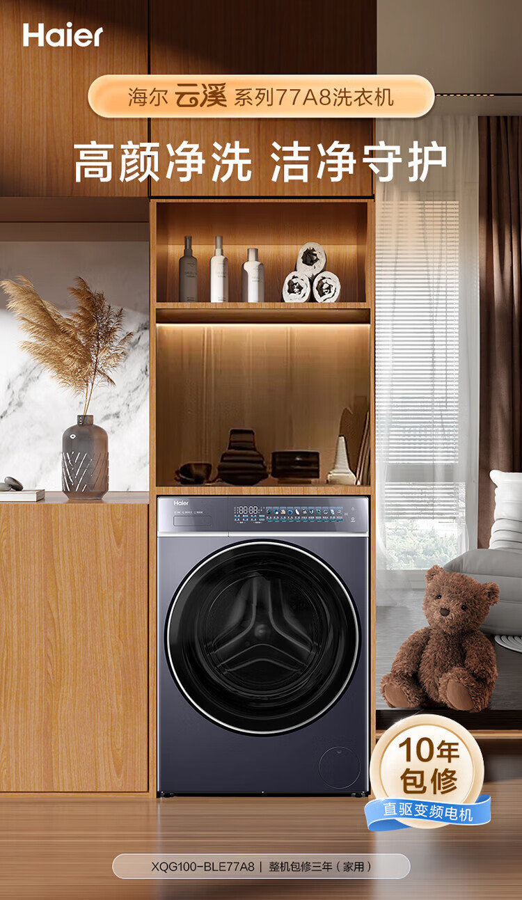 【云溪致胜版77A8】海尔10公斤洗烘套薄平嵌直驱精华洗2.0 10KG全自动双擎热泵洗干套 直驱精华洗+双擎热泵羊毛烘+3D透视