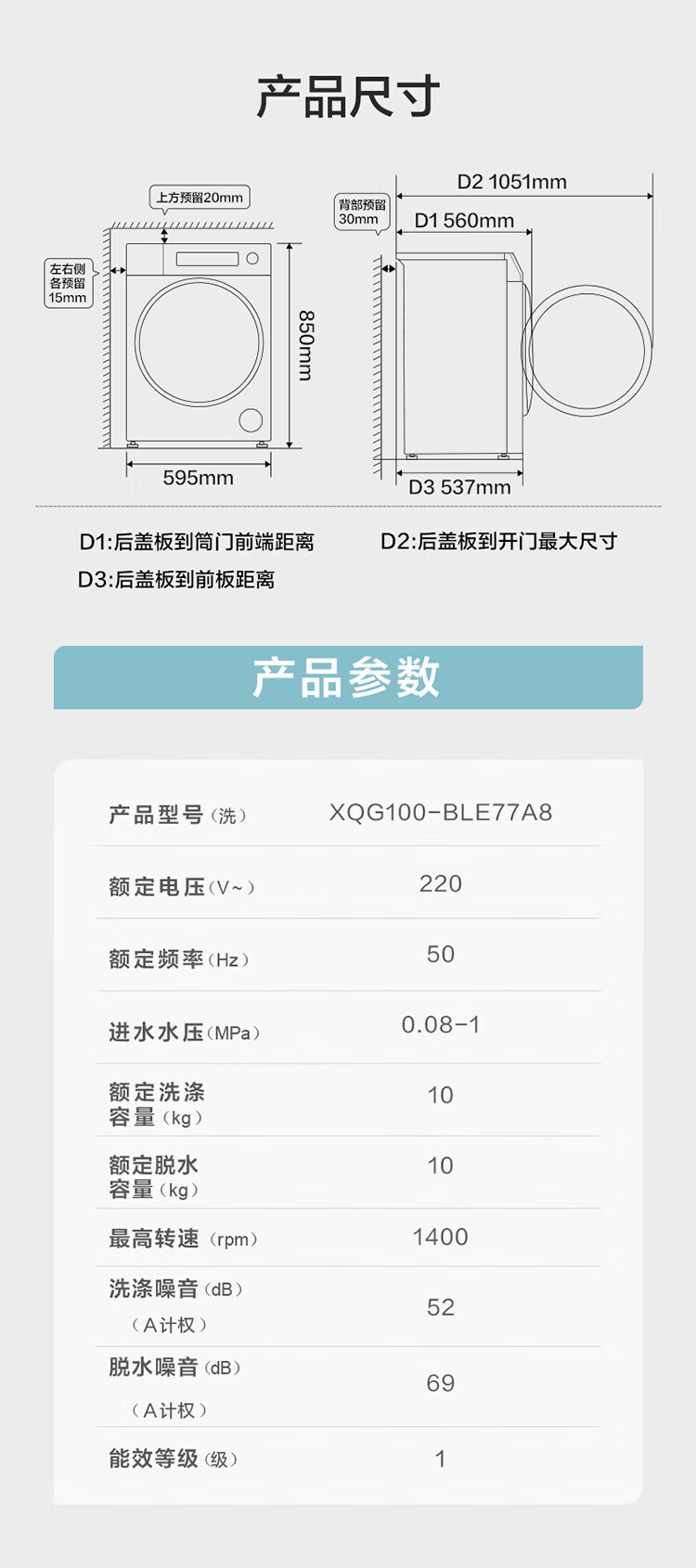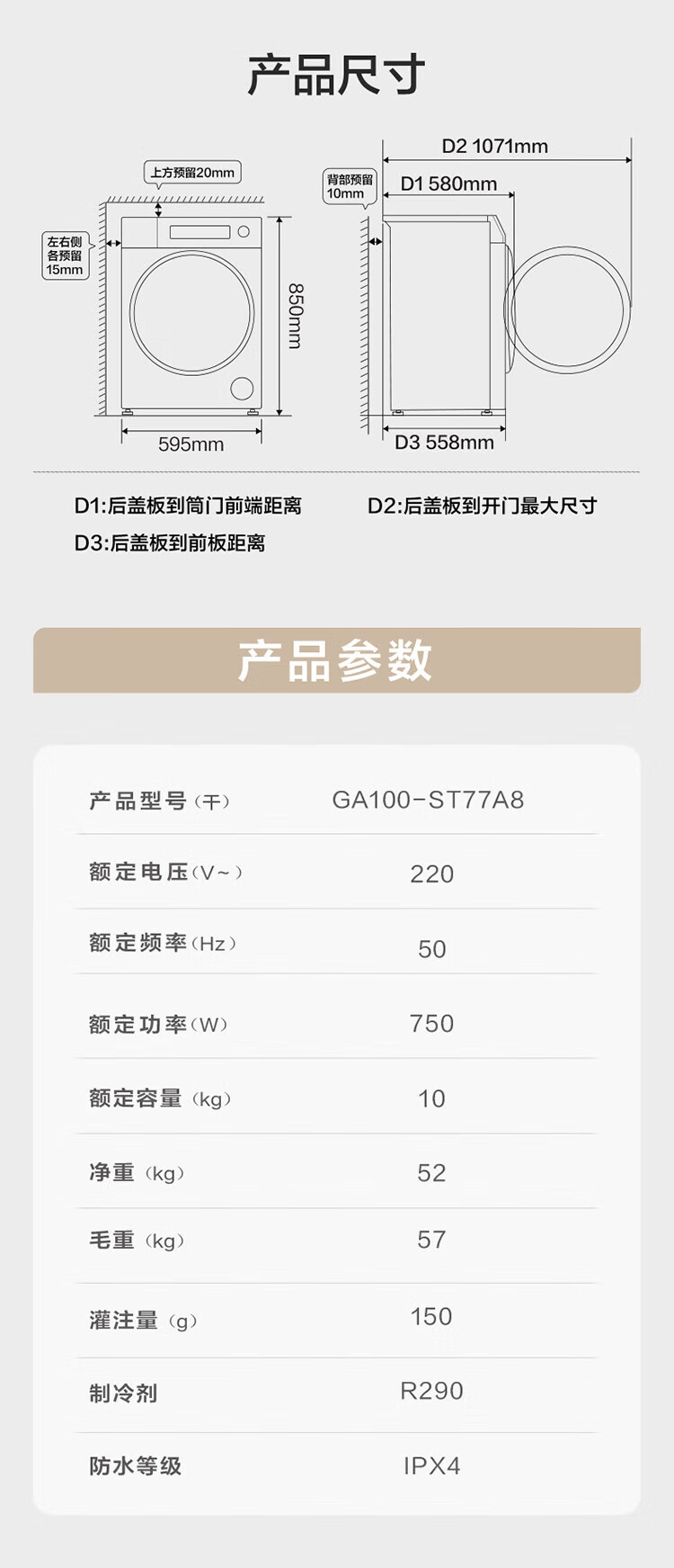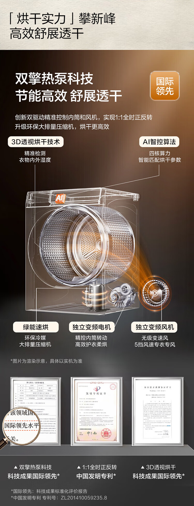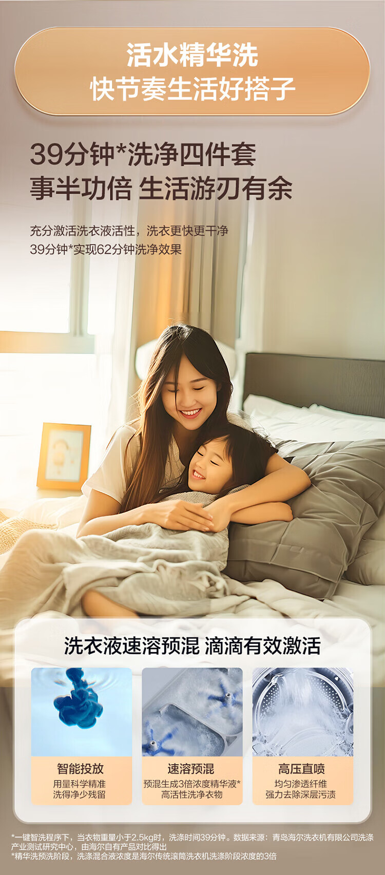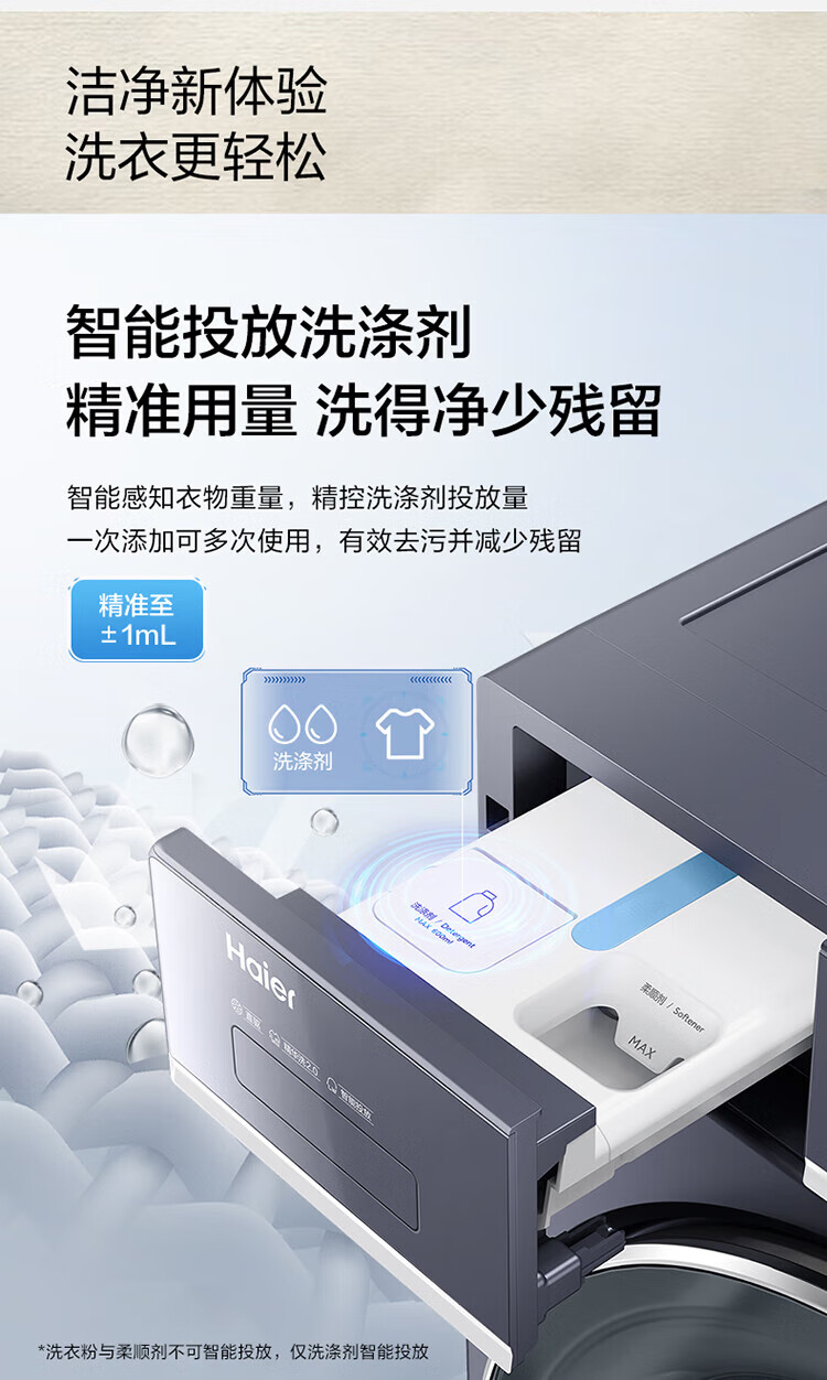 【云溪致胜版77A8】海尔10公斤洗烘套薄平嵌直驱精华洗2.0 10KG全自动双擎热泵洗干套 直驱精华洗+双擎热泵羊毛烘+3D透视