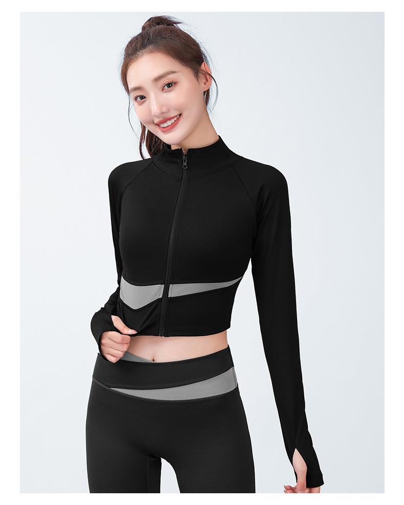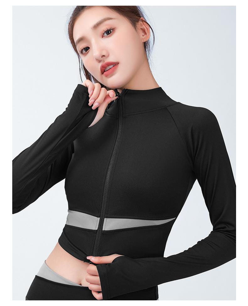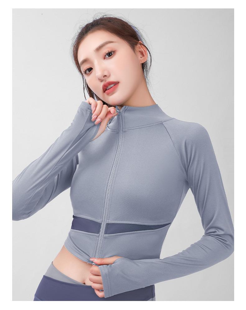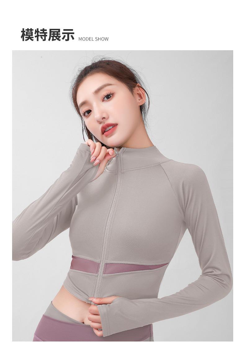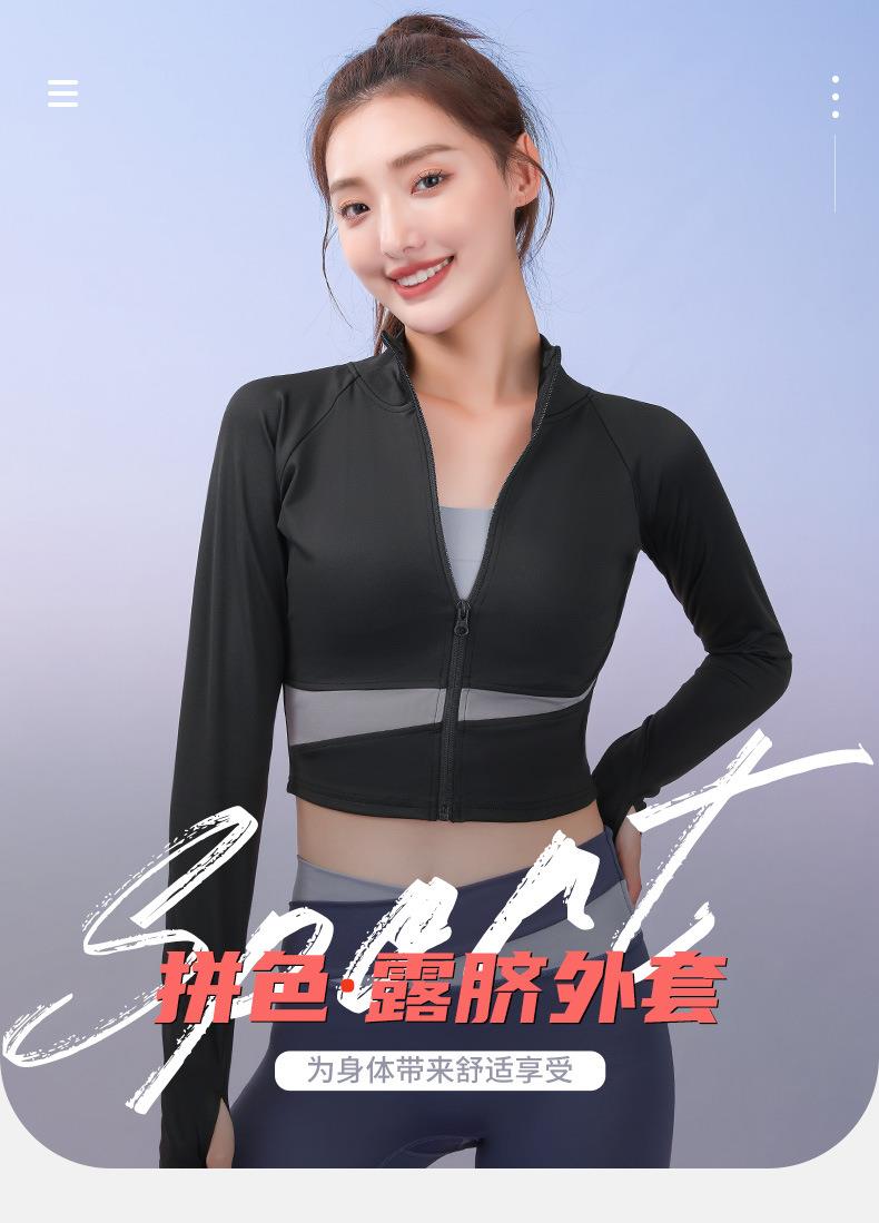聚衣堂拼色外穿女长款长袖拉链速干紧身显瘦运动健身跑步瑜伽外套