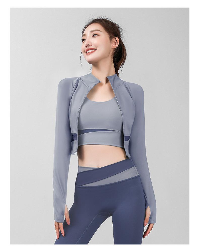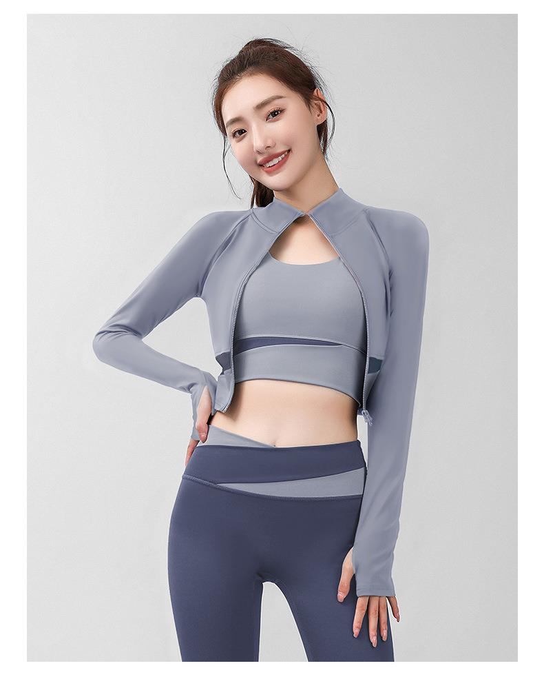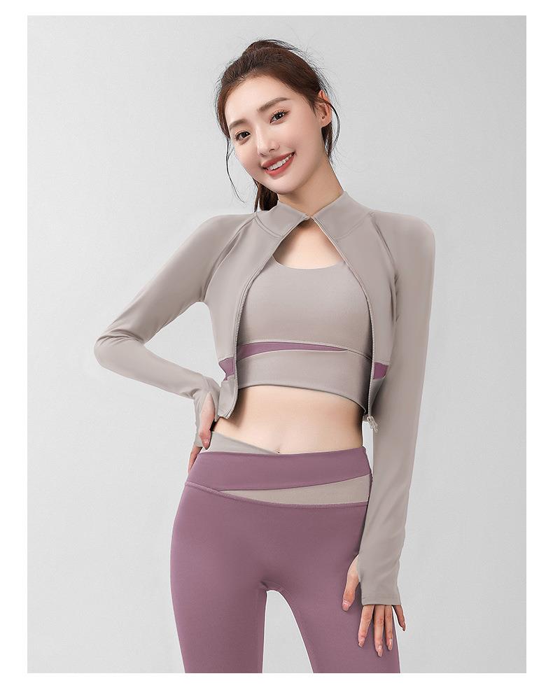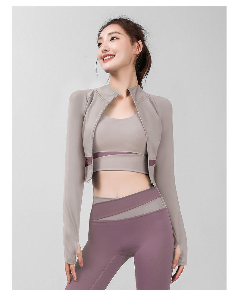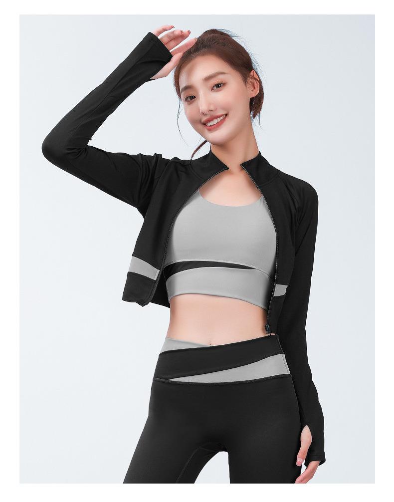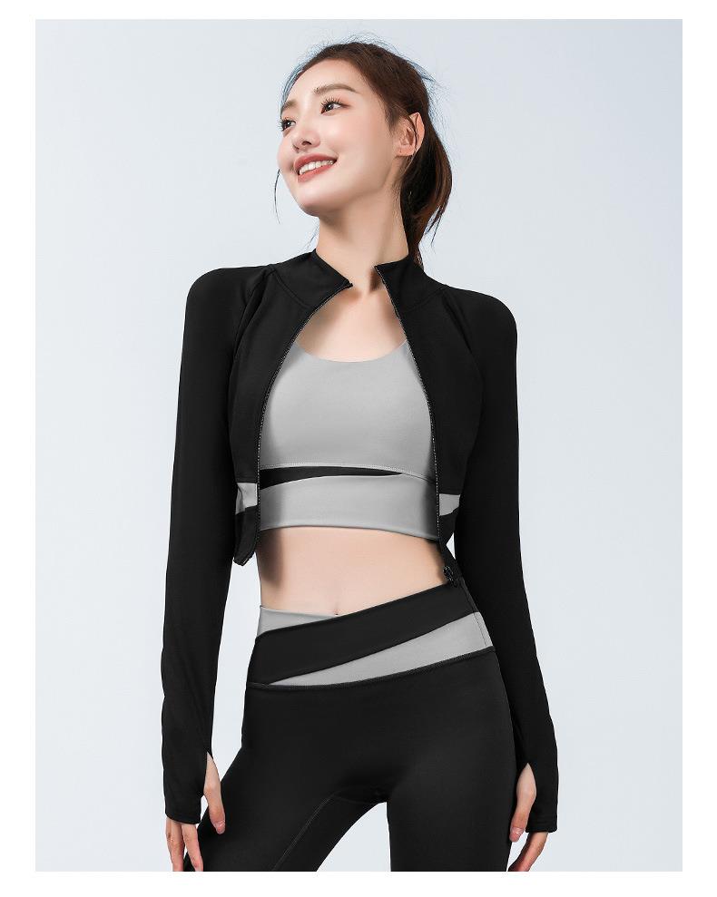 聚衣堂拼色外穿女长款长袖拉链速干紧身显瘦运动健身跑步瑜伽外套