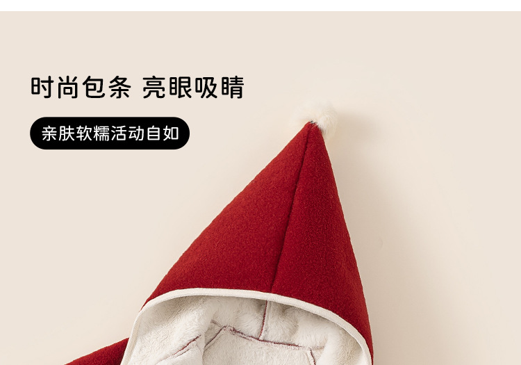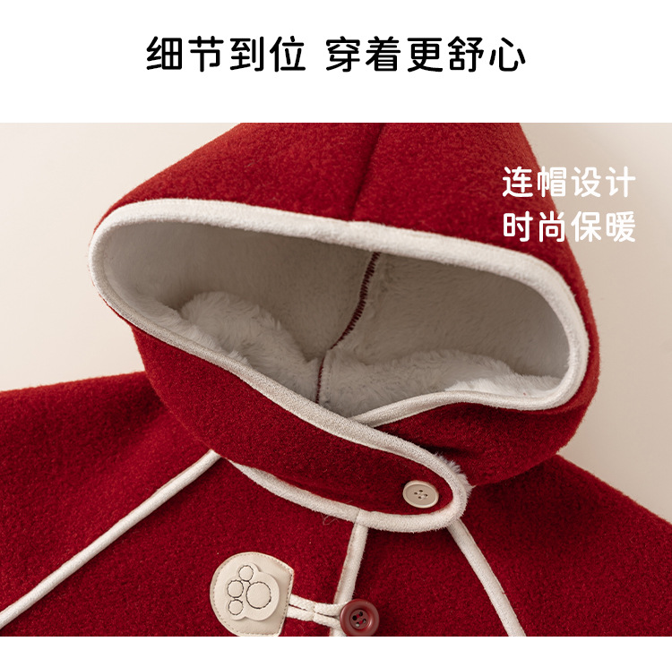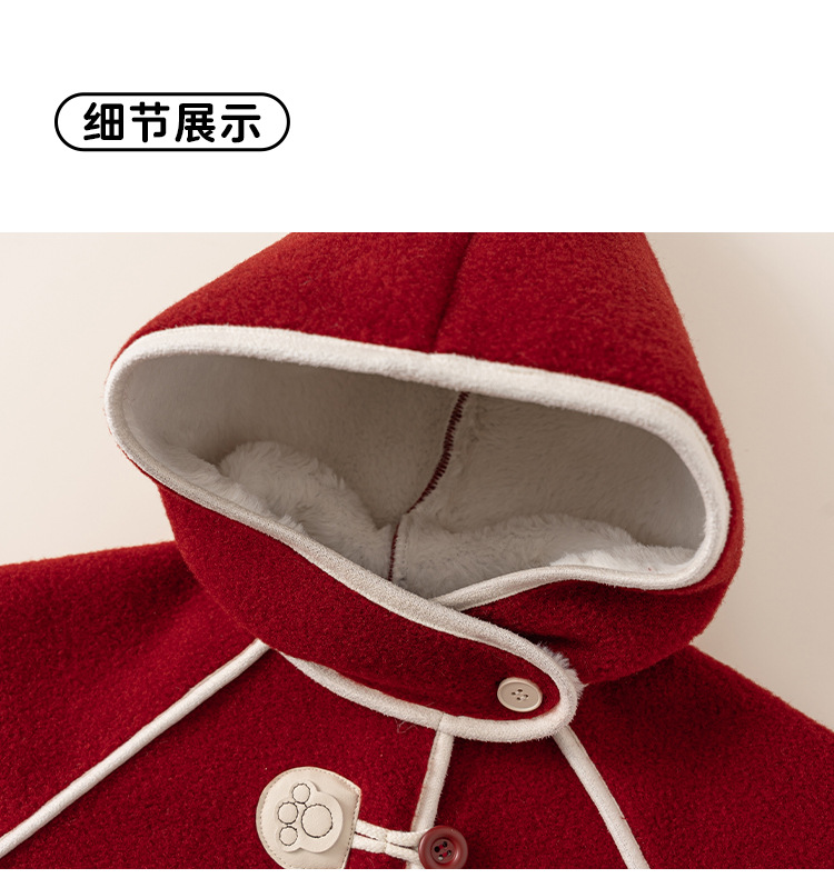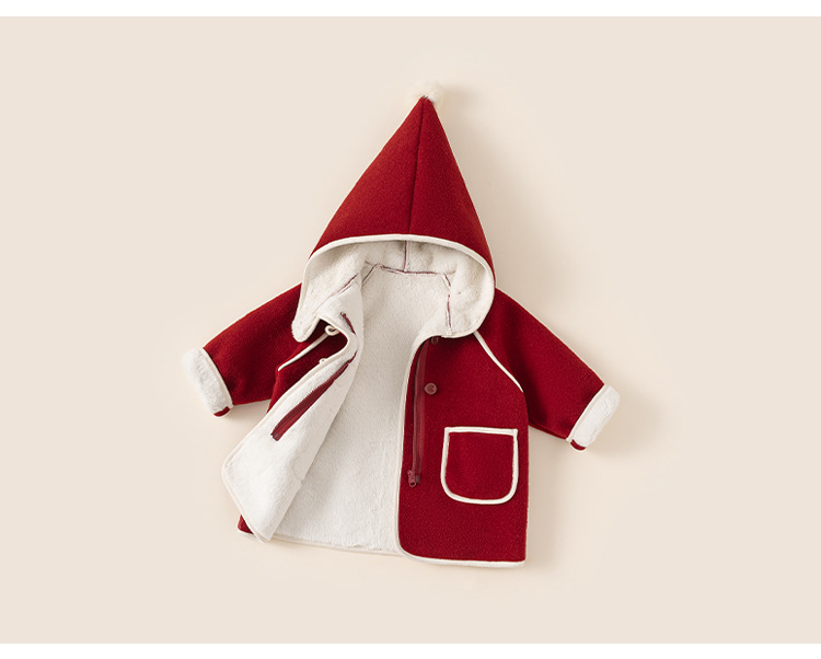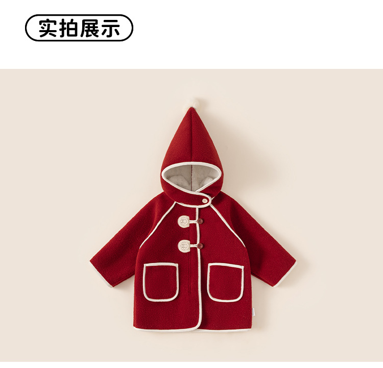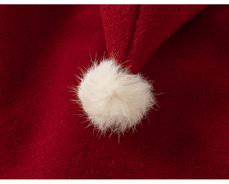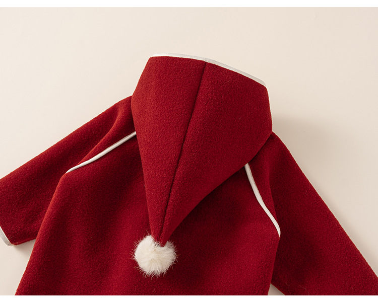 邦选小童呢大衣红色过年尖尖帽 中长款巫师帽女童外套